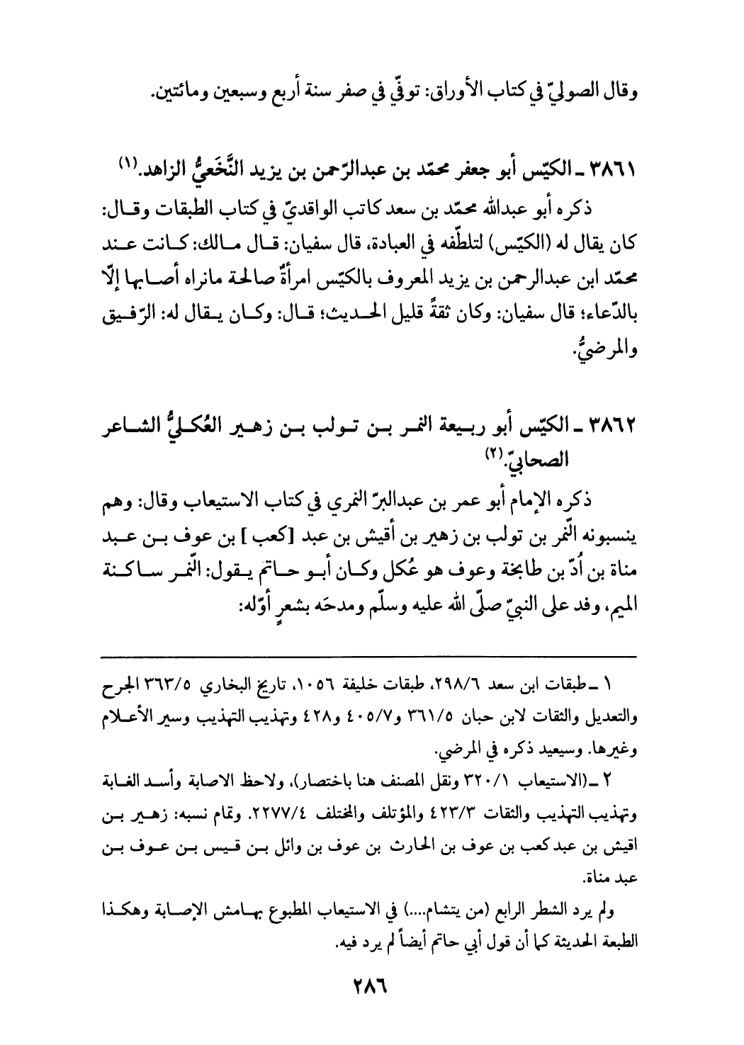 (¬1) طبقات ابن سعد 298/ 6، طبقات خليفة 1056، تاريخ البخاري 363/ 5 الجرح والتعديل والثقات لابن حبان 361/ 5 و 405/ 7 و 428 وتهذيب التهذيب وسير الأعلام وغيرها. وسيعيد ذكره في المرضي.