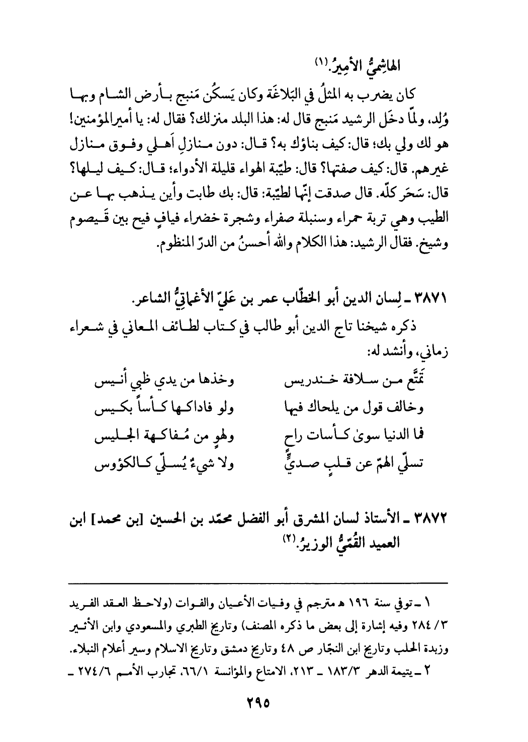 (¬2) يتيمة الدهر 183/ 3 - 213، الامتاع والمؤانسة 66/ 1، تجارب الأمم 274/ 6 -