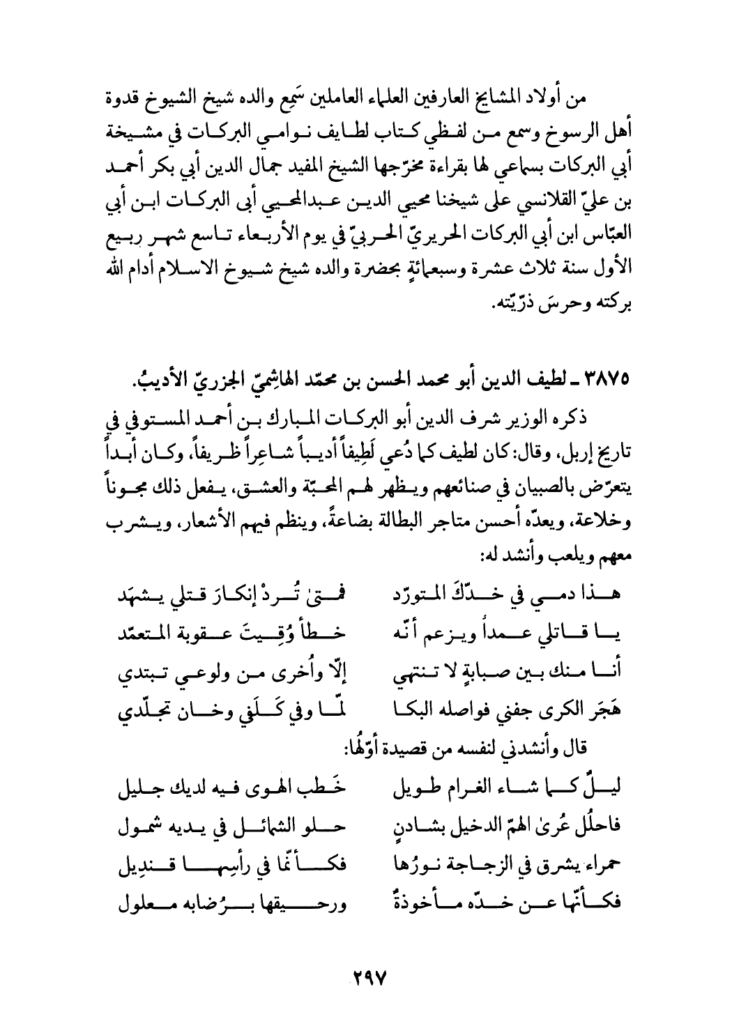 3875 - لطيف الدين أبو محمد الحسن بن محمّد الهاشميّ الجزريّ الأديب.
