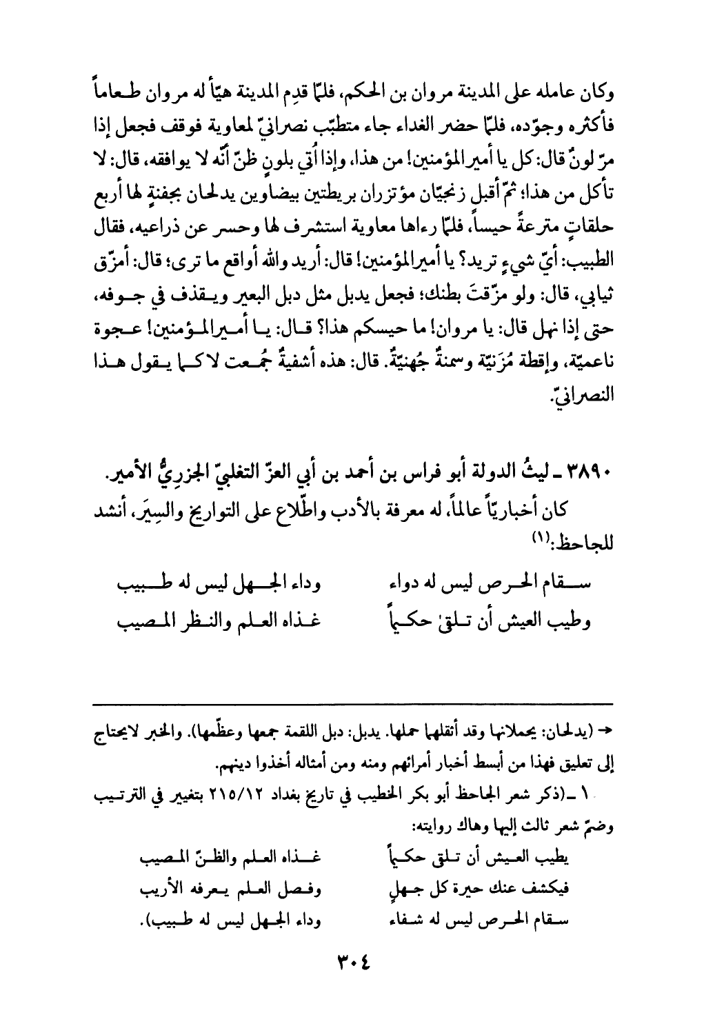 (¬1) (ذكر شعر الجاحظ أبو بكر الخطيب في تاريخ بغداد 215/ 12 بتغيير في الترتيب وضمّ شعر ثالث إليها وهاك روايته: