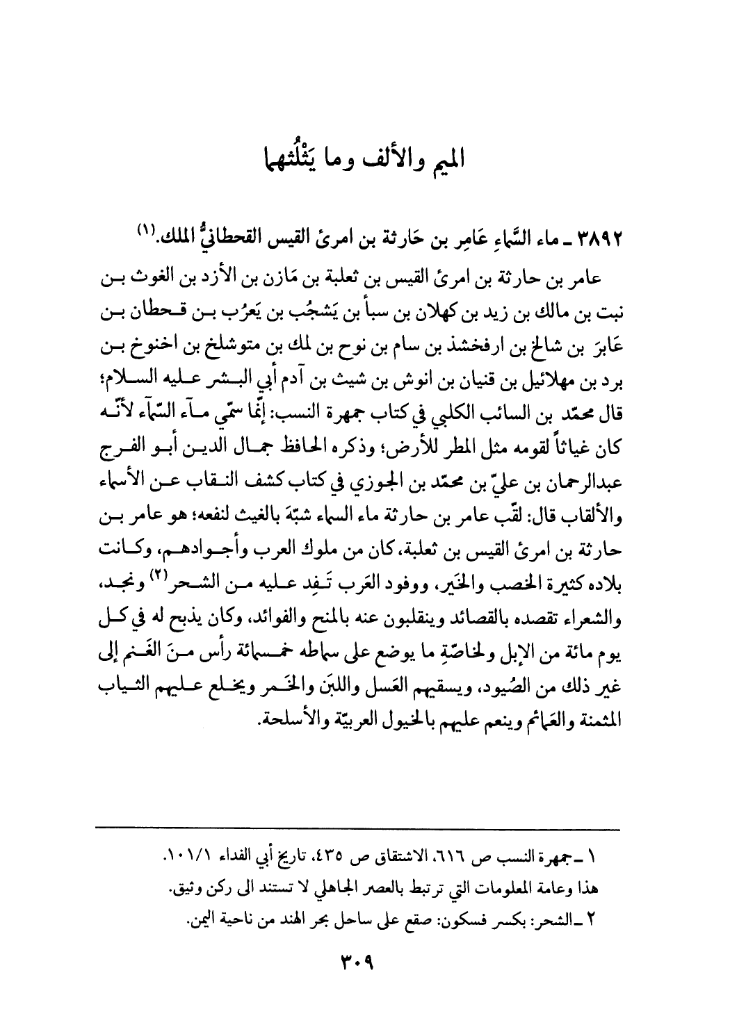3892 - ماء السّماء عامر بن حارثة بن امرئ القيس القحطانيّ الملك. (¬1)