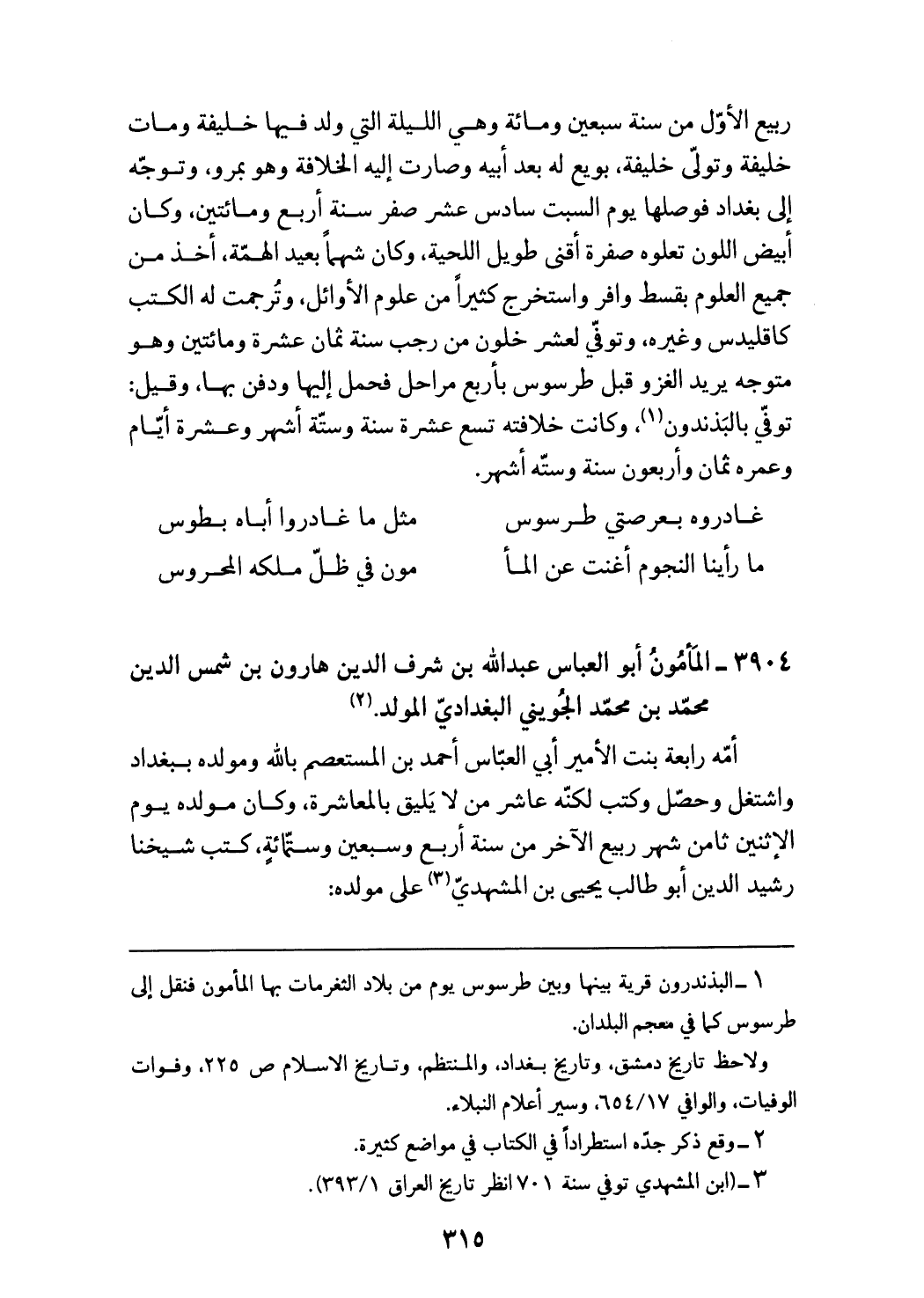 (¬1) البذندون قرية بينها وبين طرسوس يوم من بلاد الثغرمات بها المأمون فنقل إلى طرسوس كما في معجم البلدان. ولاحظ تاريخ دمشق، وتاريخ بغداد، والمنتظم، وتاريخ الاسلام ص 225، وفوات الوفيات، والوافي 654/ 17، وسير أعلام النبلاء.