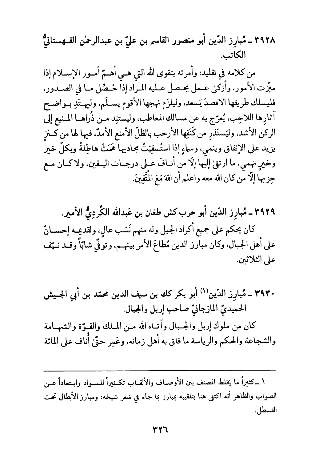 3929 - مبارز الدّين أبو حرب كش طغان بن عبد الله الكرديّ الأمير.