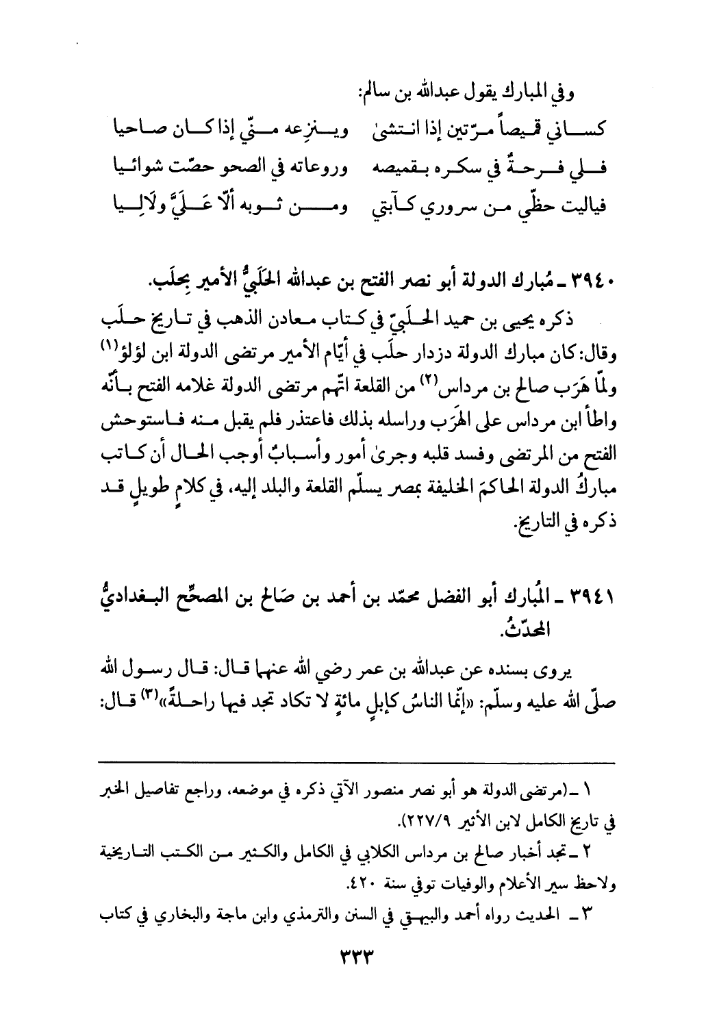3940 - مبارك الدولة أبو نصر الفتح بن عبد الله الحلبيّ الأمير بحلب.