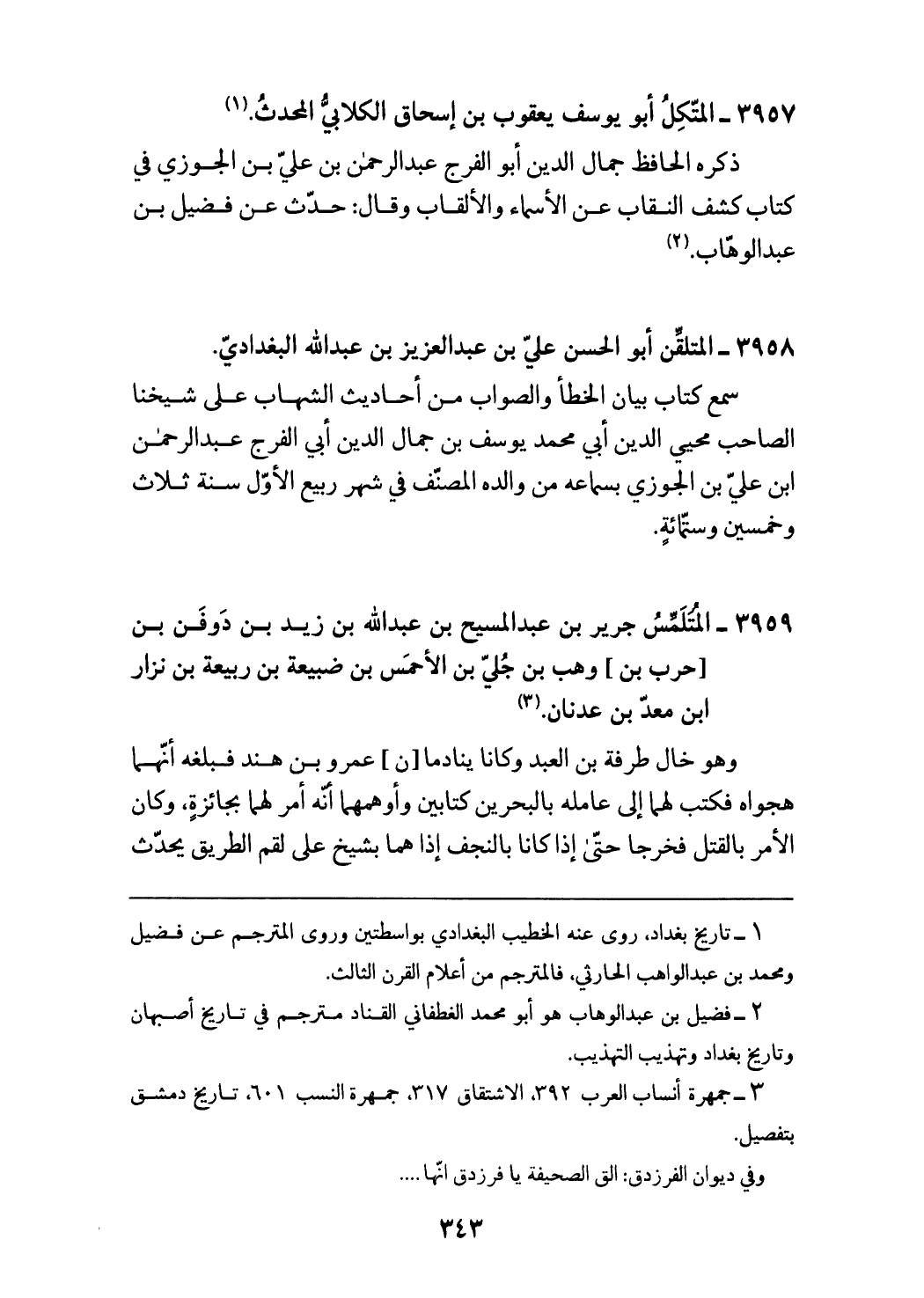 3957 - المتّكل أبو يوسف يعقوب بن إسحاق الكلابيّ المحدث. (¬1)