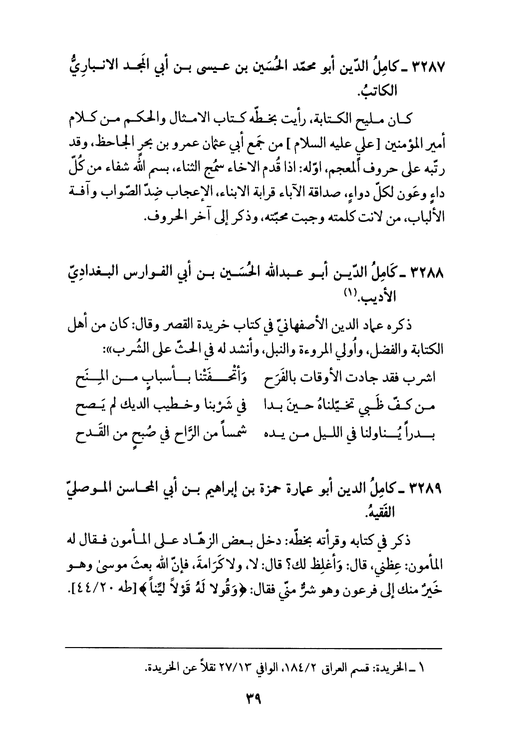 3287 - كامل الدّين أبو محمّد الحسين بن عيسى بن أبي المجد الانباريّ