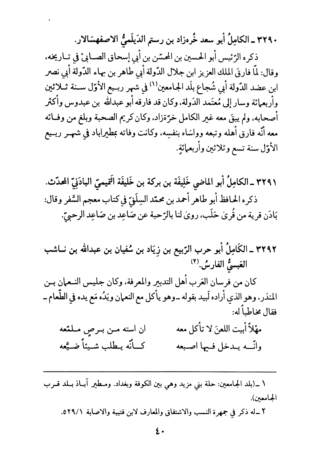 3290 - الكامل أبو سعد خره زاد بن رستم الديلميّ الاصفهسالار.