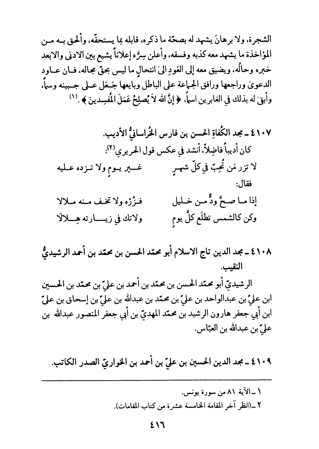 4107 - مجد الكفاة الحسن بن فارس الخراسانيّ الأديب.