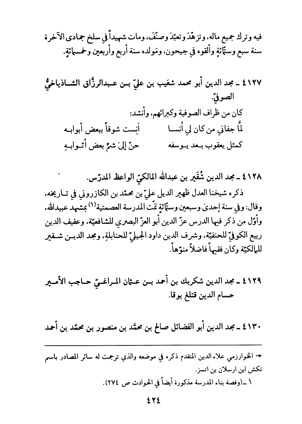 4127 - مجد الدين أبو محمد شعيب بن عليّ بن عبد الرزّاق الشاذياخيّ