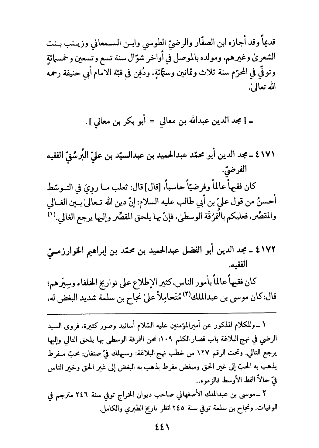 4171 - مجد الدين أبو محمّد عبد الحميد بن عبد السيّد بن عليّ البرسفيّ الفقيه