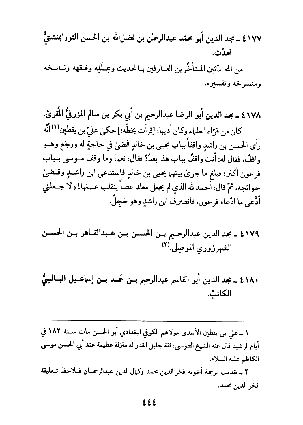 4179 - مجد الدين عبد الرحيم بن الحسن بن عبد القاهر بن الحسن الشهرزوري الموصلي. (¬2)