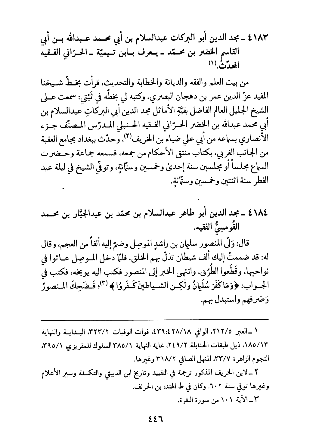 4183 - مجد الدين أبو البركات عبد السلام بن أبي محمد عبد الله بن أبي