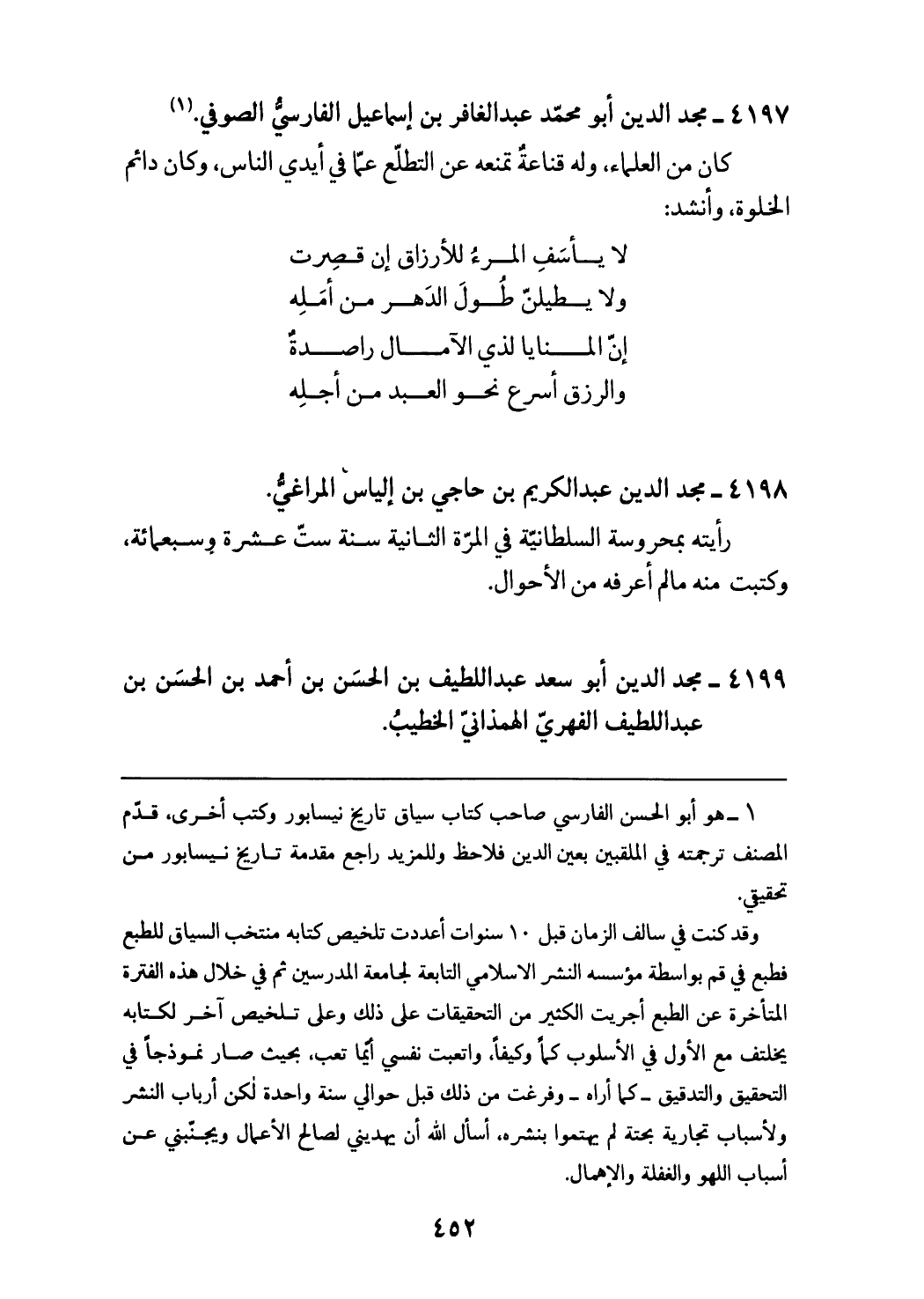 4197 - مجد الدين أبو محمّد عبد الغافر بن إسماعيل الفارسيّ الصوفي. (¬1)