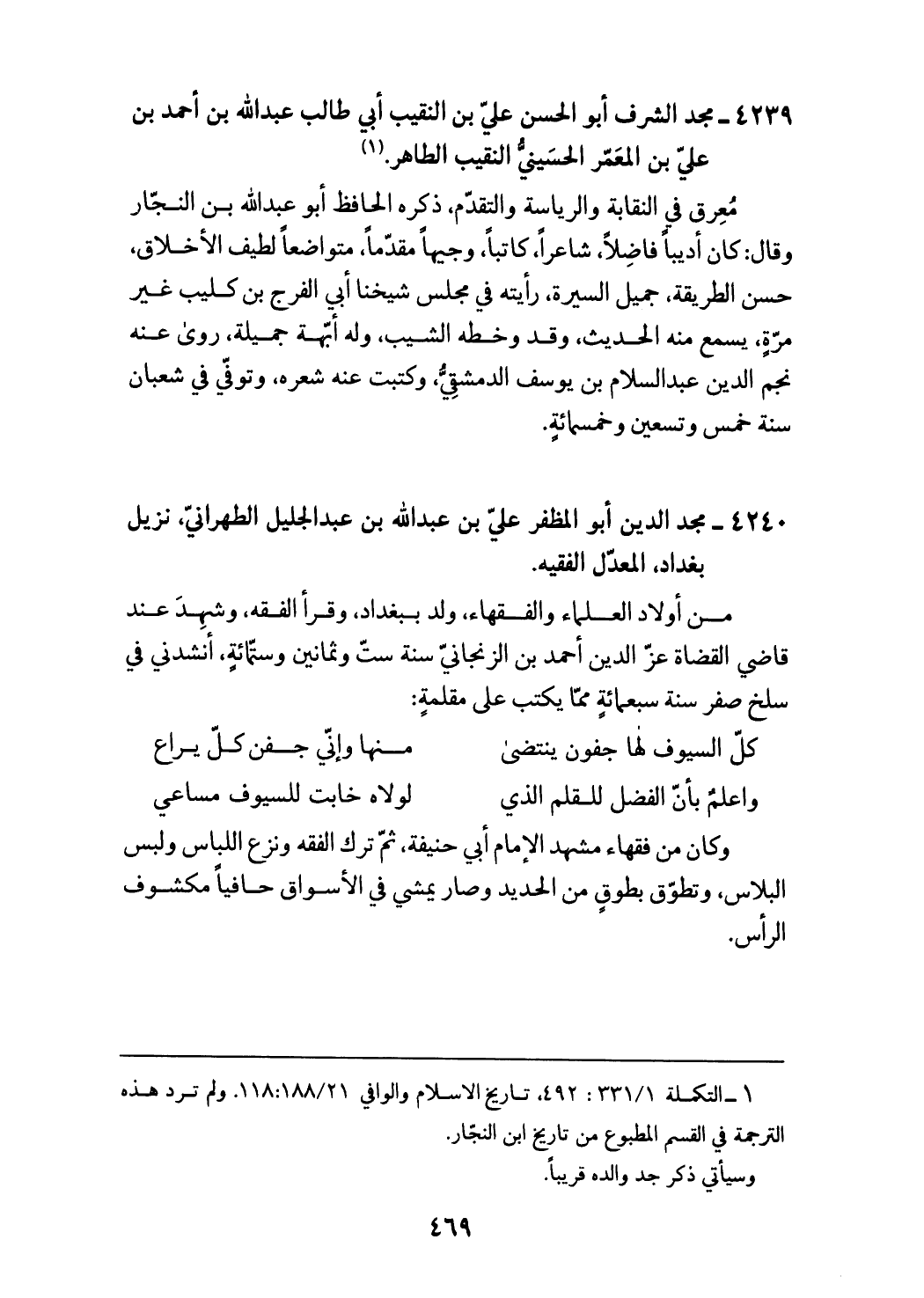 4239 - مجد الشرف أبو الحسن عليّ بن النقيب أبي طالب عبد الله بن أحمد بن