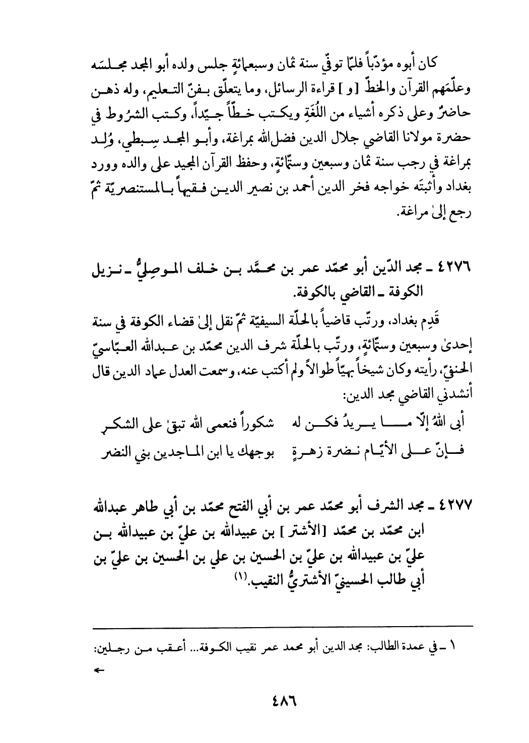 4276 - مجد الدّين أبو محمّد عمر بن محمّد بن خلف الموصليّ - نزيل