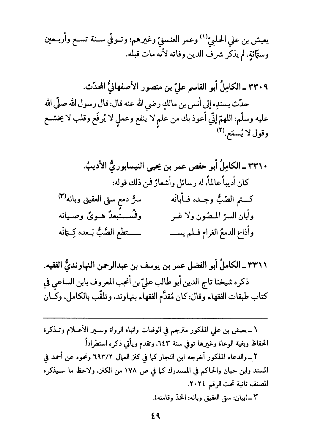3310 - الكامل أبو حفص عمر بن يحيى النيسابوريّ الأديب.