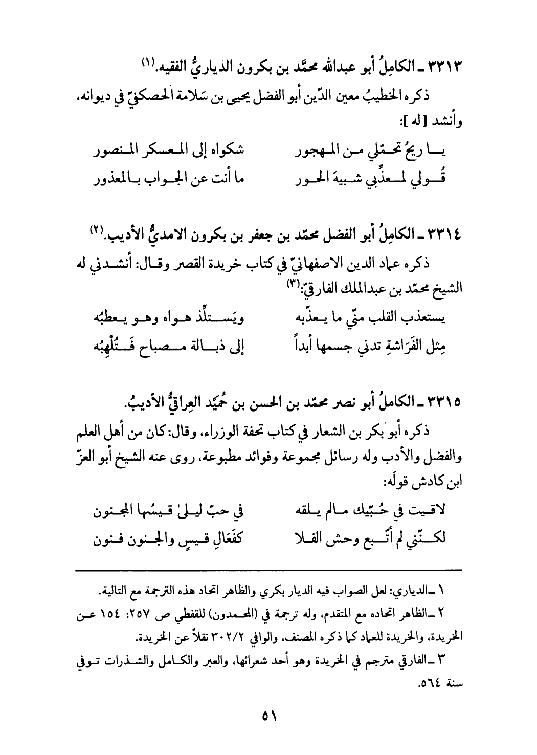 (¬3) الفارقي مترجم في الخريدة وهو أحد شعرائها، والعبر والكامل والشذرات توفي سنة 564.