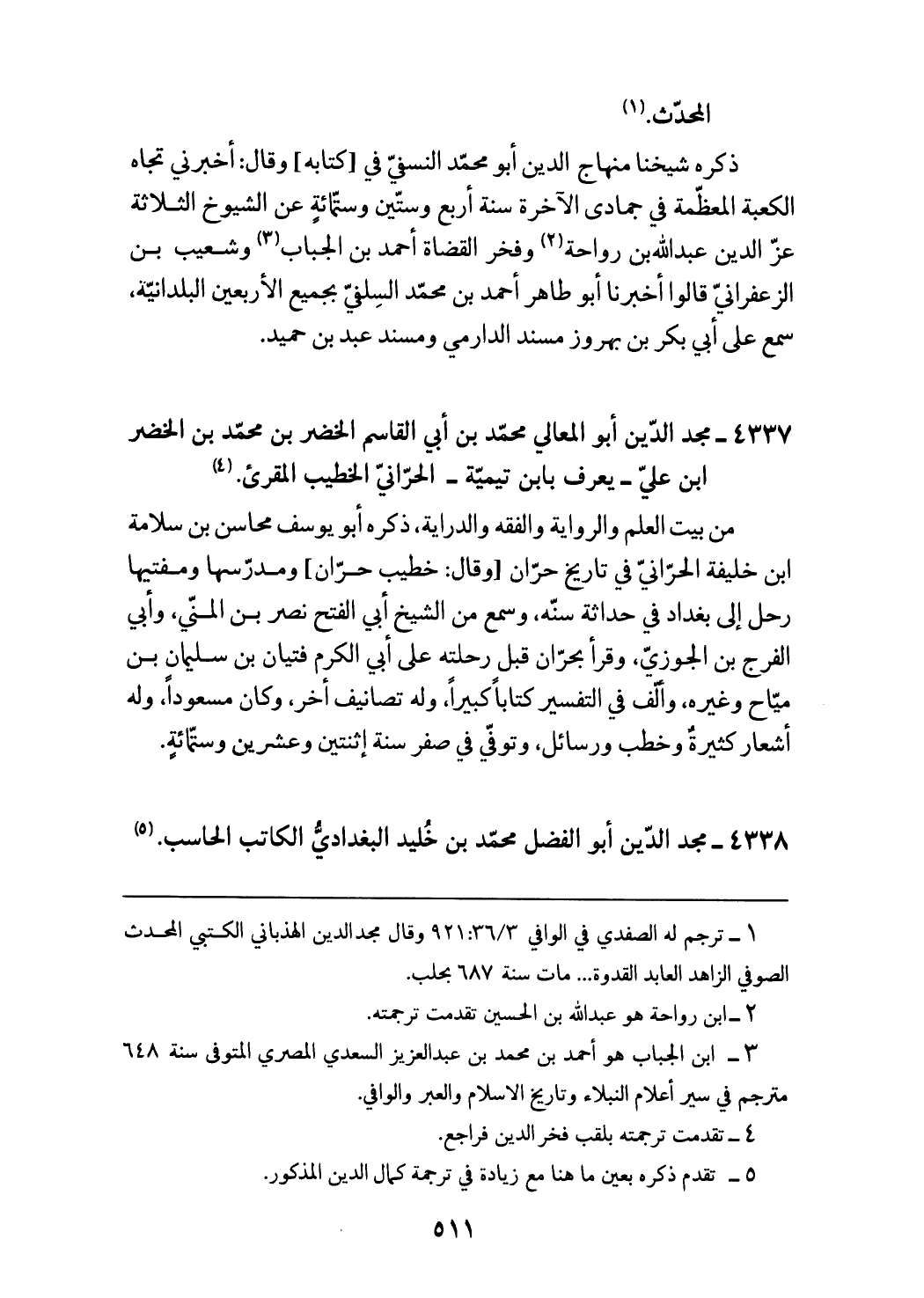 4338 - مجد الدّين أبو الفضل محمّد بن خليد البغداديّ الكاتب الحاسب. (¬5)