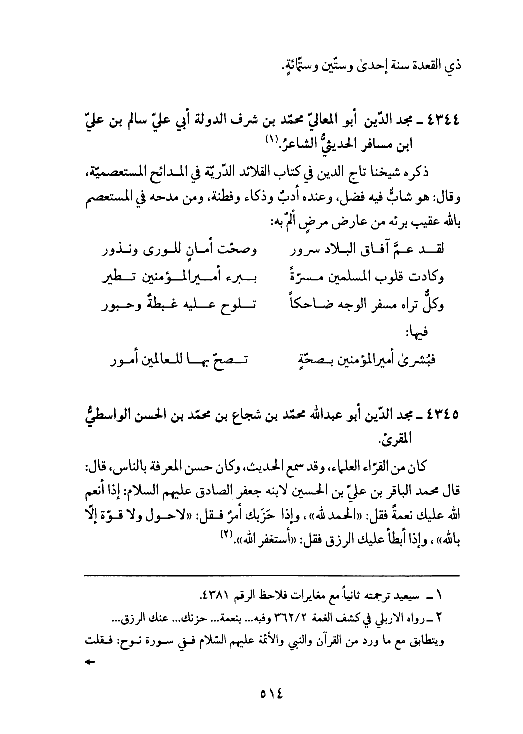 4345 - مجد الدّين أبو عبد الله محمّد بن شجاع بن محمّد بن الحسن الواسطيّ