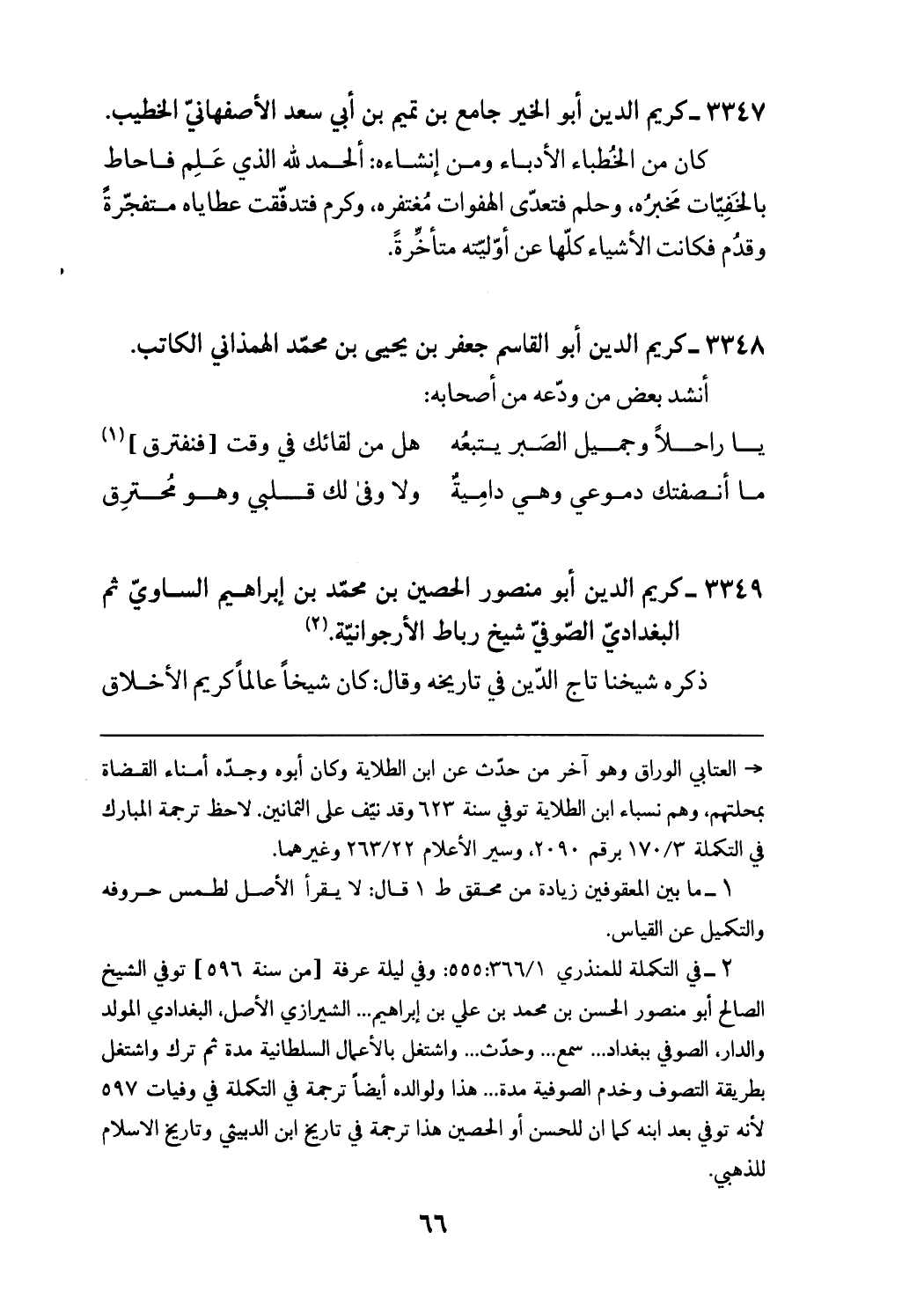 3349 - كريم الدين أبو منصور الحصين بن محمّد بن إبراهيم الساويّ ثم