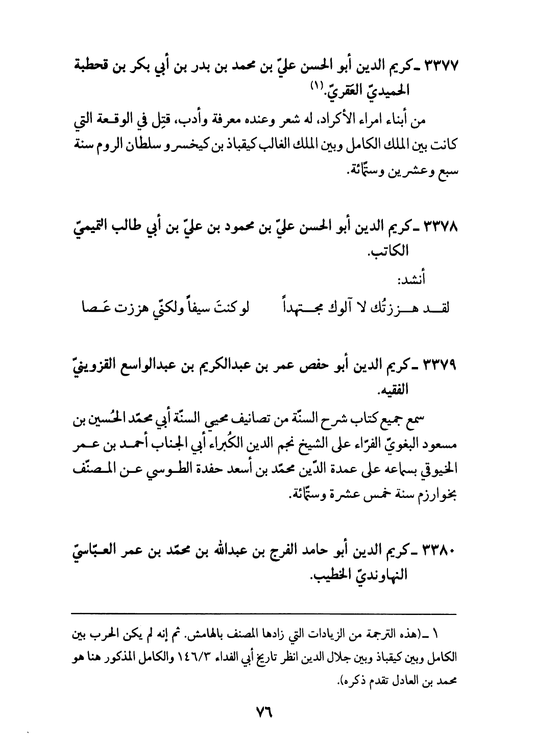 3378 - كريم الدين أبو الحسن عليّ بن محمود بن عليّ بن أبي طالب التميميّ