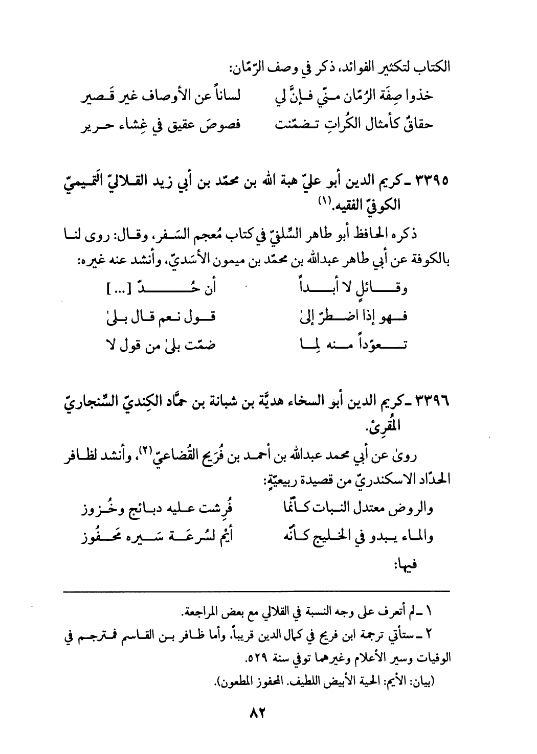 (¬2) ستأتي ترجمة ابن فريح في كمال الدين قريبا، وأما ظافر بن القاسم فمترجم في الوفيات وسير الأعلام وغيرهما توفي سنة 529. (بيان: الأيم: الحية الأبيض اللطيف. المحفوز المطعون).