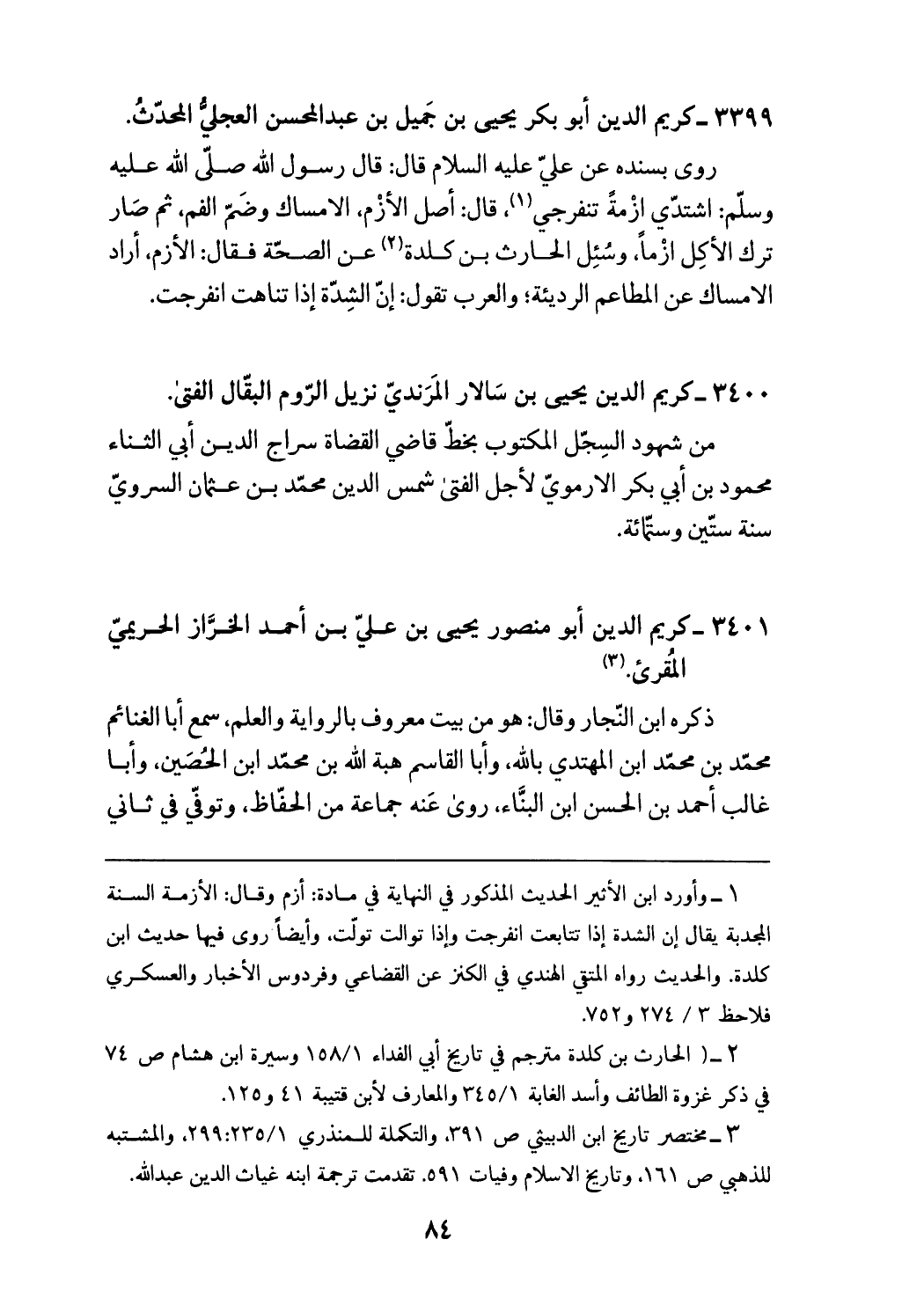 3399 - كريم الدين أبو بكر يحيى بن جميل بن عبد المحسن العجليّ المحدّث.