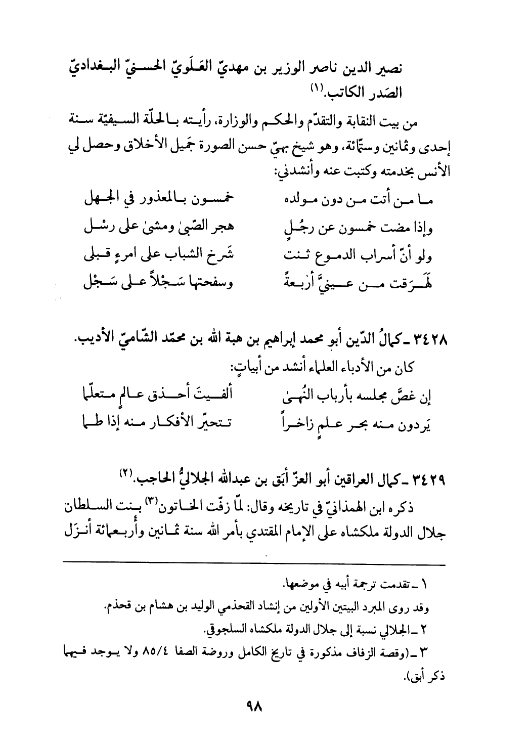 3428 - كمال الدّين أبو محمد إبراهيم بن هبة الله بن محمّد الشّاميّ الأديب.