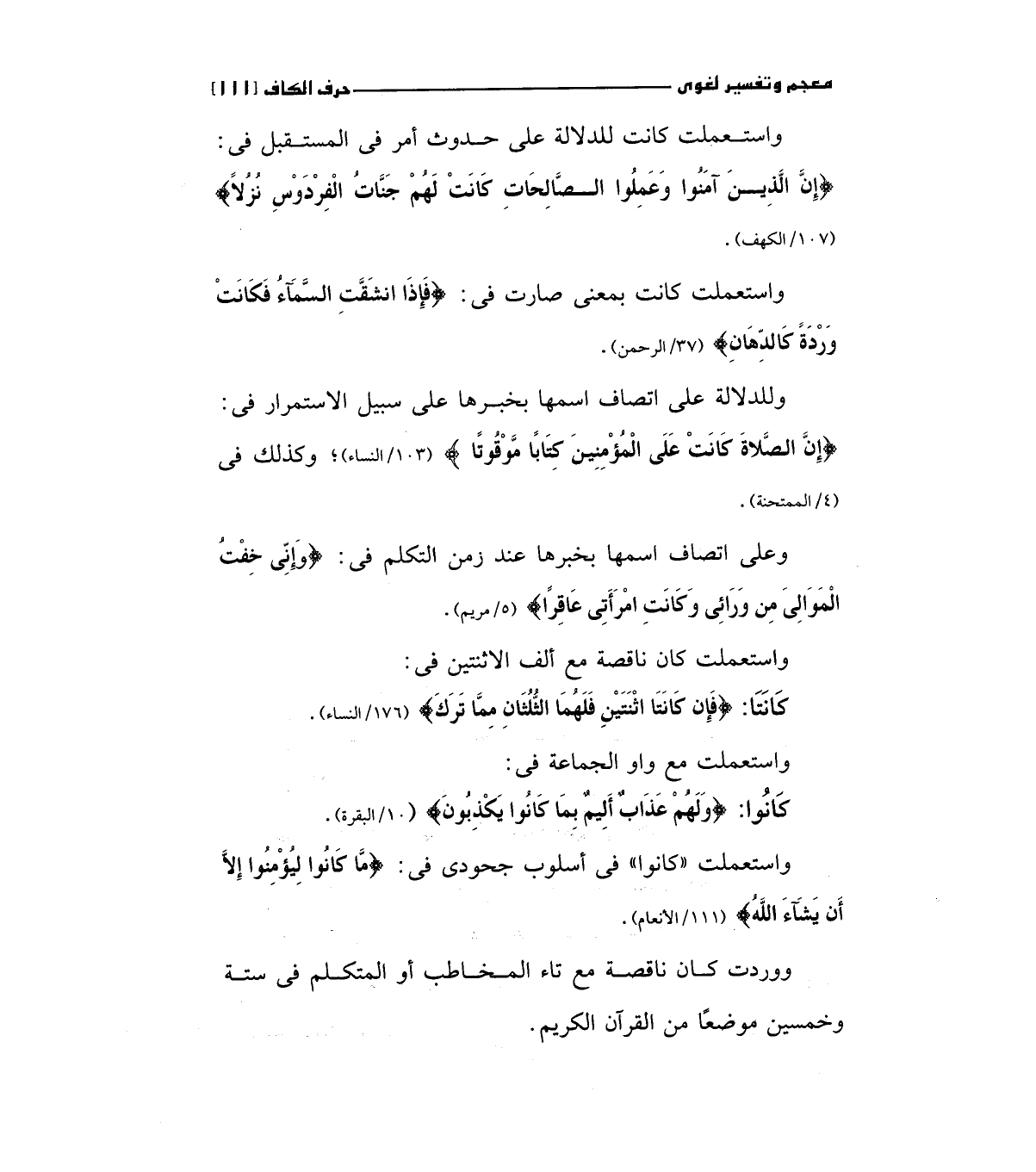 واستعملت "كانوا" في أسلوب جحودي في: (مَا كَانُوا لِيُؤْمِنُوا إِلاَّ أَنْ يَشَاءَ اللَّهُ) " 111/الأنعام".