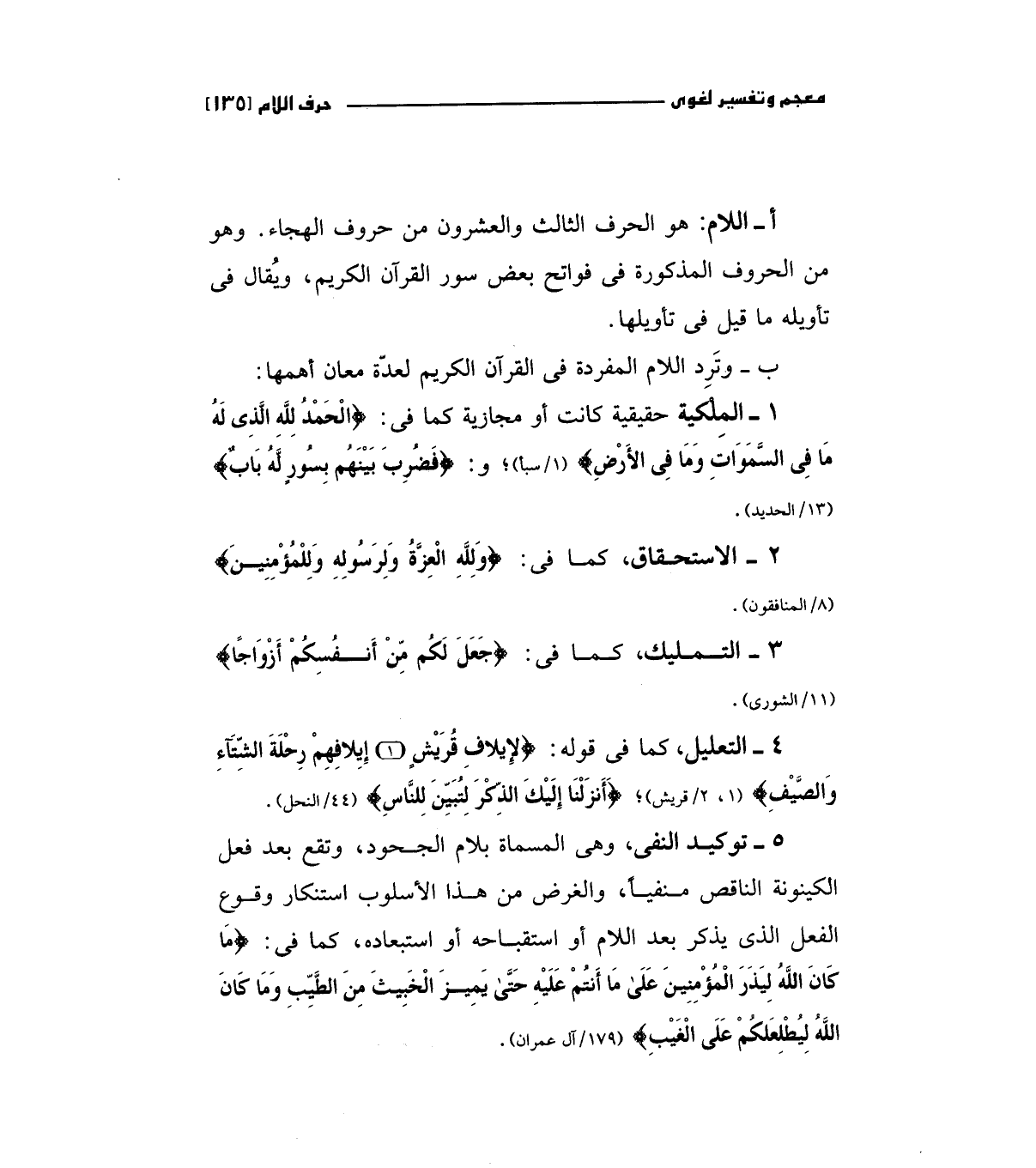 ب وترد اللام المفردة في القرآن الكريم لعدة معان أهمها: