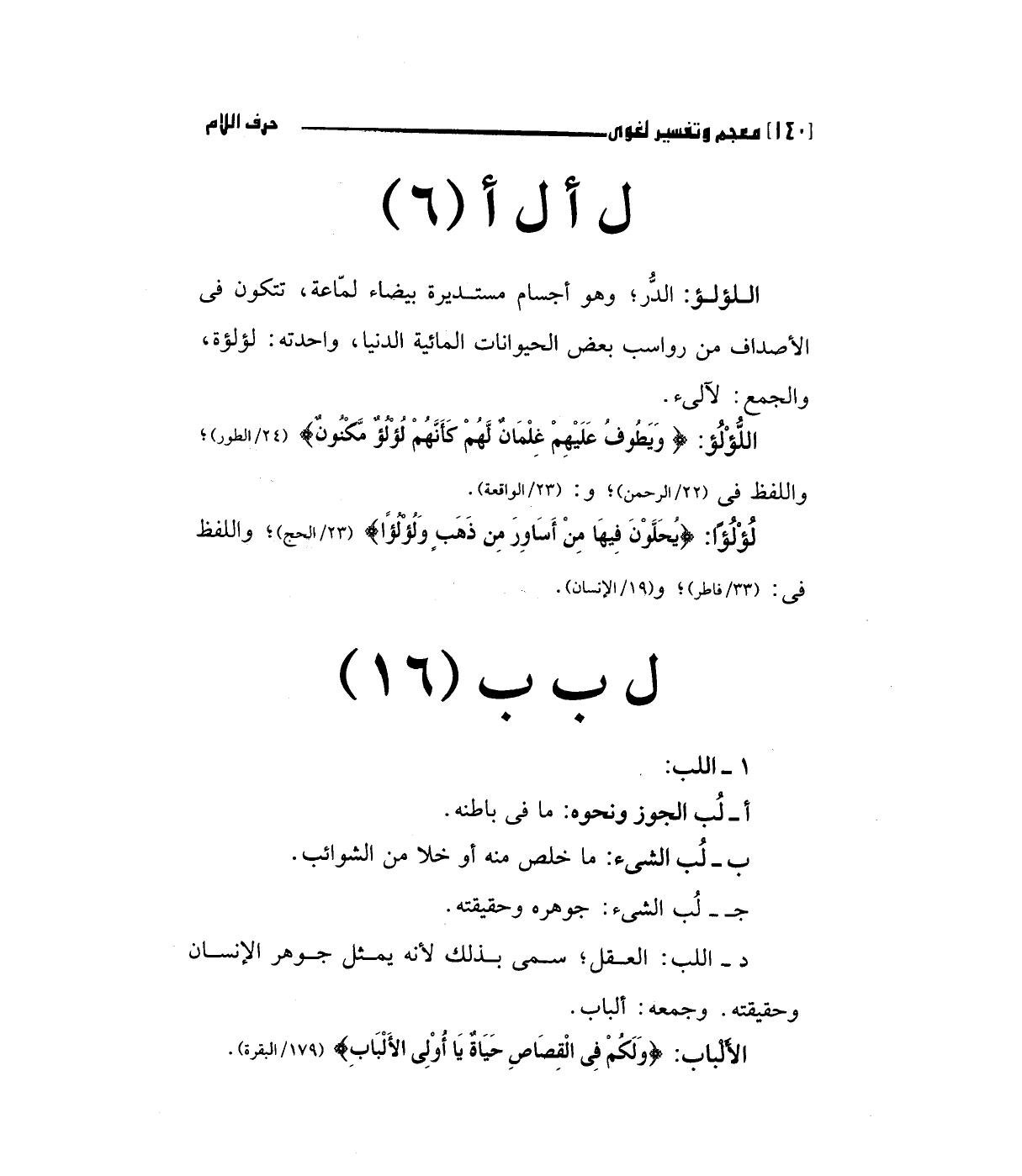 د-اللب: العقل، سمي بذلك لأنه يمثل جوهر الإنسان وحقيقته وجمعه ألباب.