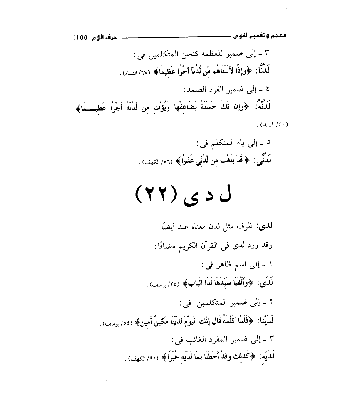 لدي: ظرف مثل لدن معناه عند أيضا.
