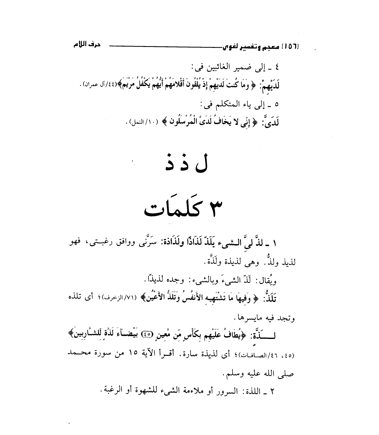 تلذ: (وَفِيهَا مَا تَشْتَهِيهِ الأَنفُسُ وَتَلَذُّ الأَعْيُنُ) " 71/الزخرف" أي تلذه وتجد فيه ما يسرها.