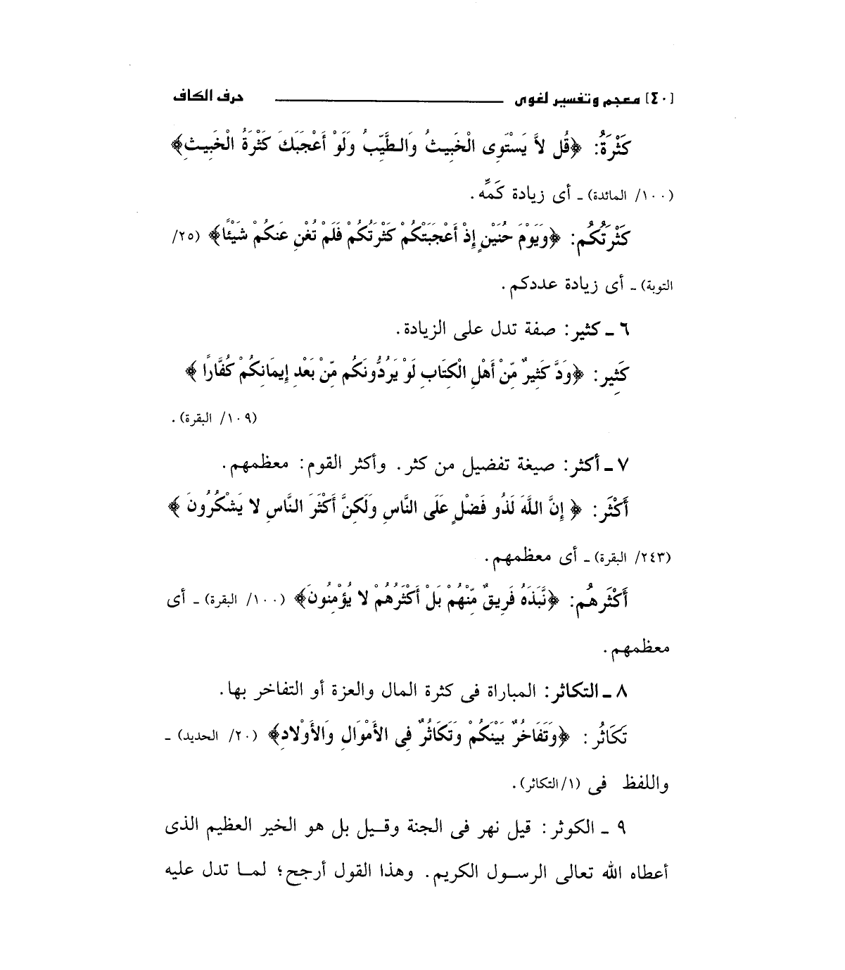 كثرة: (قُلْ لا يَسْتَوِي الْخَبِيثُ وَالطَّيِّبُ وَلَوْ أَعْجَبَكَ كَثْرَةُ الْخَبِيثِ) " 100/المائدة " أي زيادة كمة.
