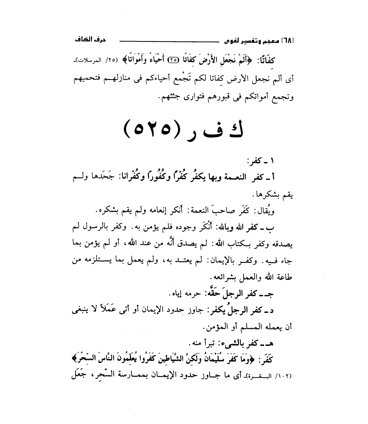 د- كفر الرجل يكفر: جاوز حدود الإيمان أو أتي عملا لا ينبغي أن يعمله المسلم أو المؤمن.