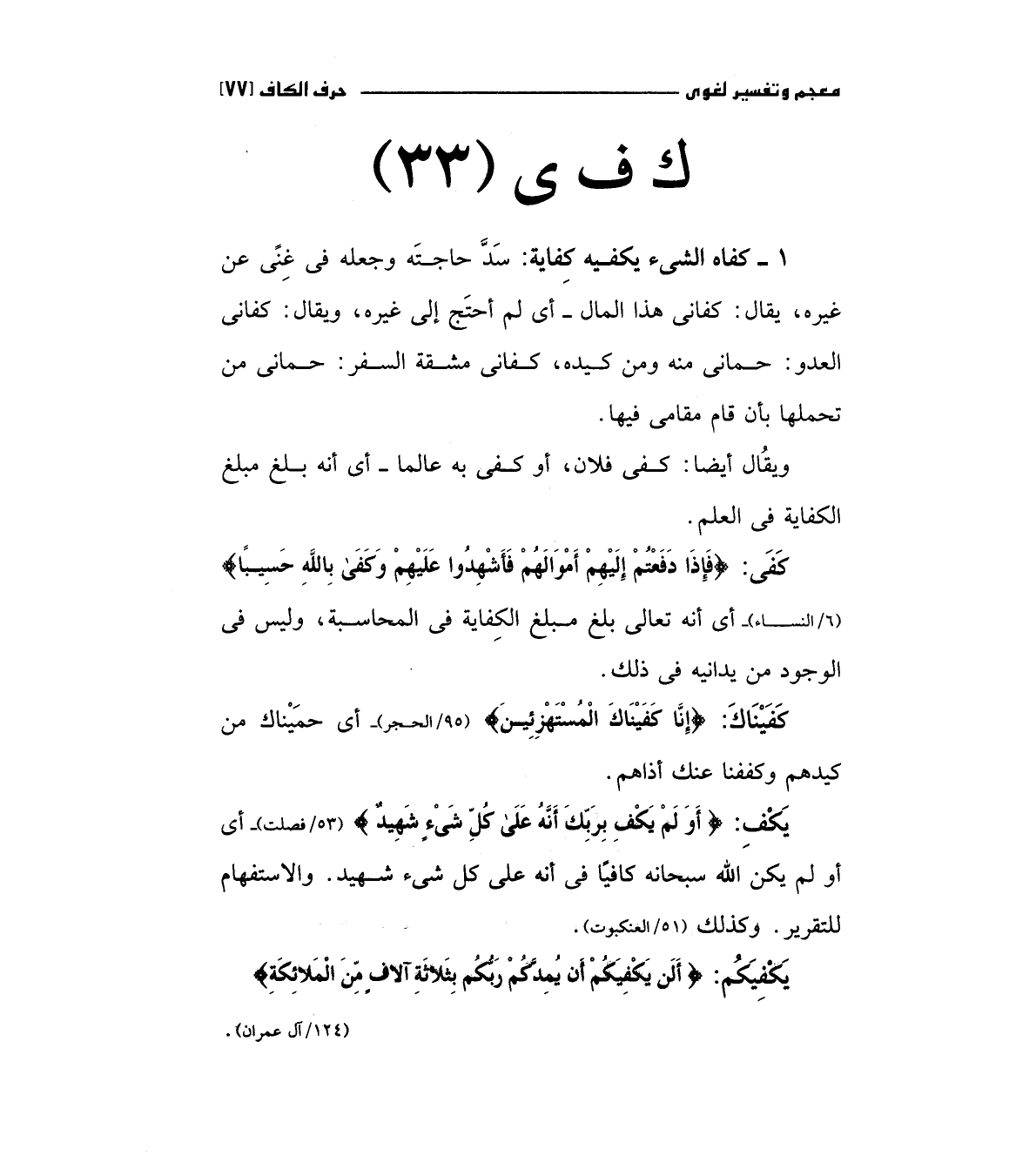 يكف: (أَوَلَمْ يَكْفِ بِرَبِّكَ أَنَّهُ عَلَى كُلِّ شَيْءٍ شَهِيدٌ) " 53/فصلت " أي أو لم يكن الله سبحانه كافيا في أنه علي كل شئ شهيد والاستفهام للتقرير وكذلك (51/العنكبوت "