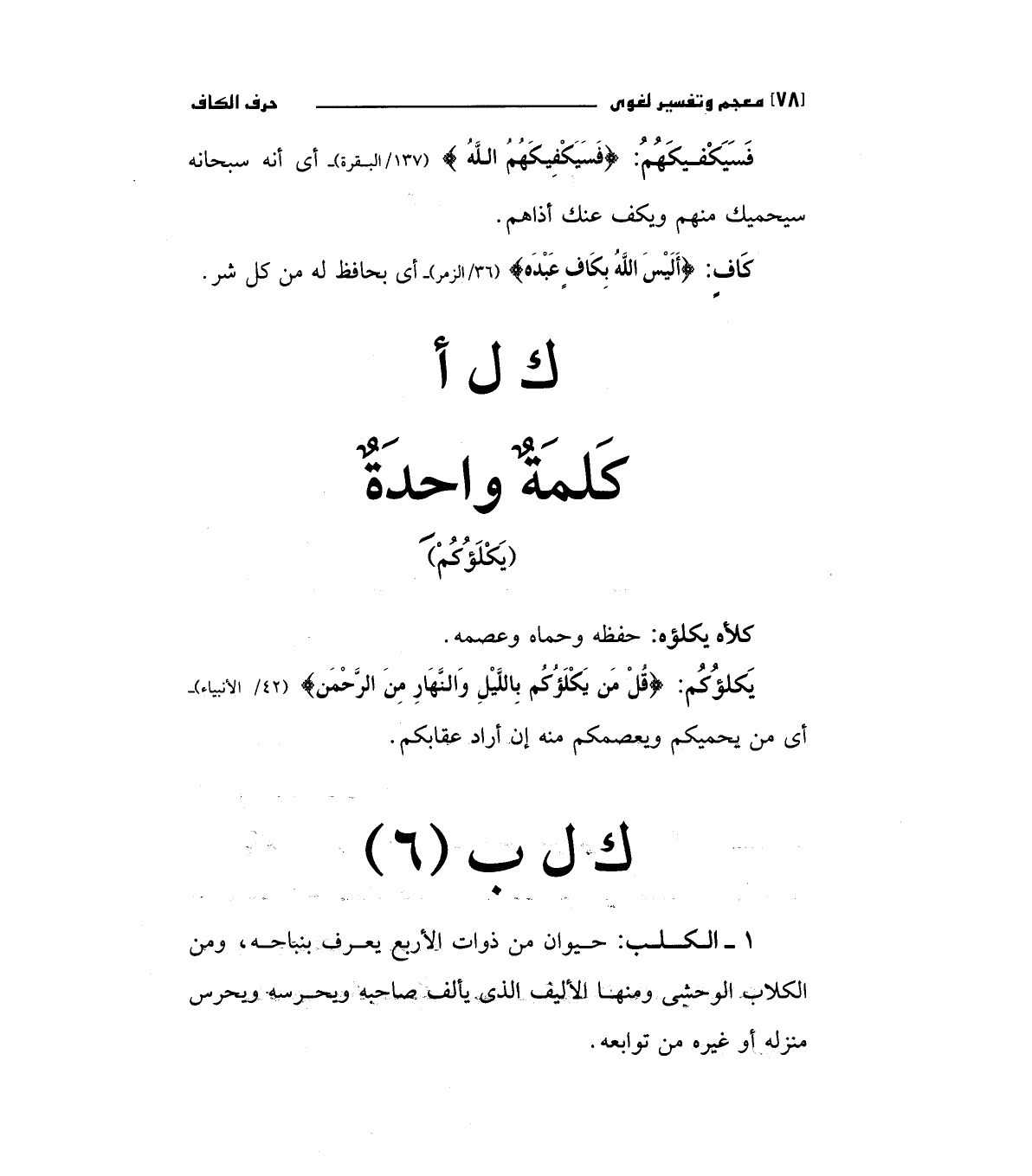 يكلؤكم: (قُلْ مَنْ يَكْلَؤُكُمْ بِاللَّيْلِ وَالنَّهَارِ مِنْ الرَّحْمَنِ) " 42/الأنبياء " أي من يحميكم ويعصمكم منه إن أراد عقابكم.