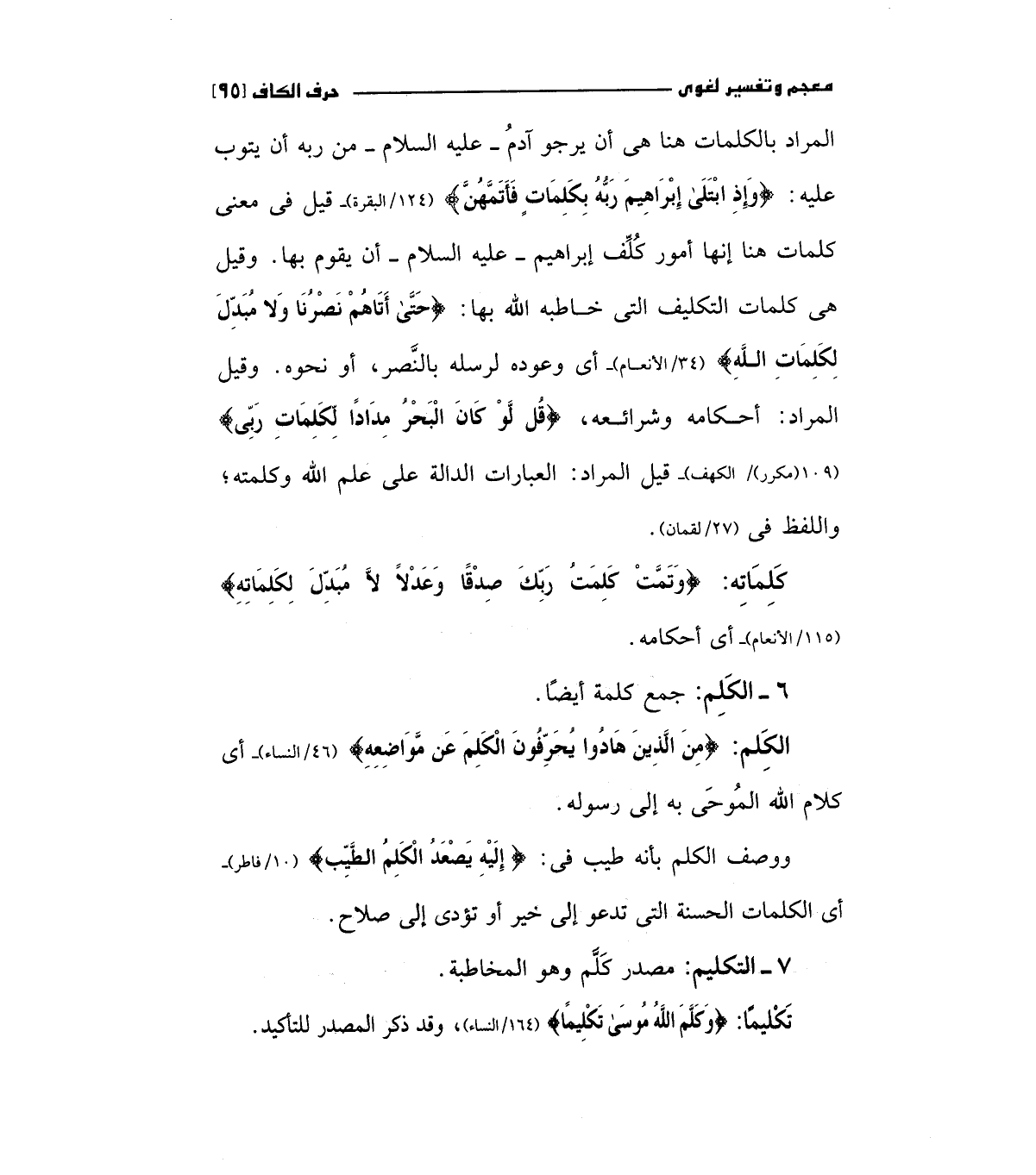 الكلم: (مِنْ الَّذِينَ هَادُوا يُحَرِّفُونَ الْكَلِمَ عَنْ مَوَاضِعِهِ) " 46/النساء" أي كلام الله الموحي به إلي رسوله.