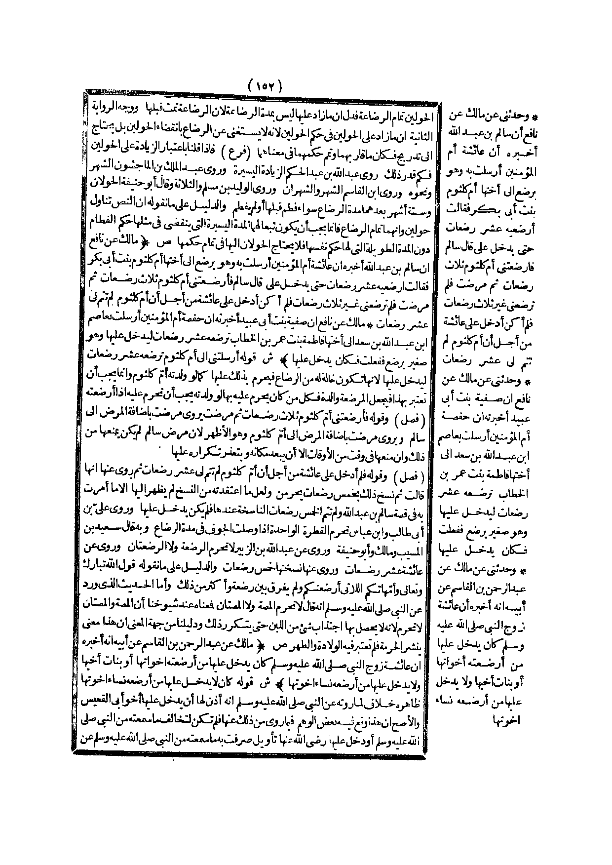 (ص) : (مَالِكٌ عَنْ عَبْدِ الرَّحْمَنِ بْنِ الْقَاسِمِ عَنْ أَبِيهِ أَنَّهُ أَخْبَرَهُ أَنَّ عَائِشَةَ زَوْجَ النَّبِيِّ - صَلَّى اللَّهُ عَلَيْهِ وَسَلَّمَ - كَانَ يَدْخُلُ عَلَيْهَا مَنْ أَرْضَعَتْهُ أَخَوَاتُهَا أَوْ بَنَاتُ أَخِيهَا وَلَا يَدْخُلُ عَلَيْهَا مَنْ أَرْضَعَهُ نِسَاءُ إخْوَتِهَا) .