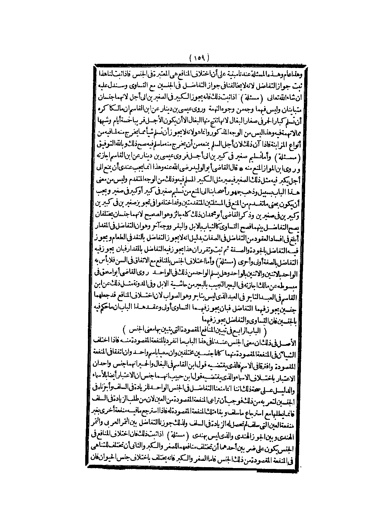 ـــــــــــــــــــــــــــــQوَهَذَا عَامٌّ وَهَذِهِ الْمَسْأَلَةُ عِنْدَنَا مَبْنِيَّةٌ عَلَى أَنَّ اخْتِلَافَ الْمَنَافِعِ هِيَ الْمُعْتَبَرَةُ فِي الْجِنْسِ فَإِذَا ثَبَتَ لَنَا هَذَا ثَبَتَ جَوَازُ التَّفَاضُلِ؛ لِأَنَّهُ لَا يُخَالِفُنَا فِي جَوَازِ التَّفَاضُلِ فِي الْجِنْسَيْنِ مَعَ التَّسَاوِي وَسَنَدُلُّ عَلَيْهِ إنْ شَاءَ اللَّهُ تَعَالَى.