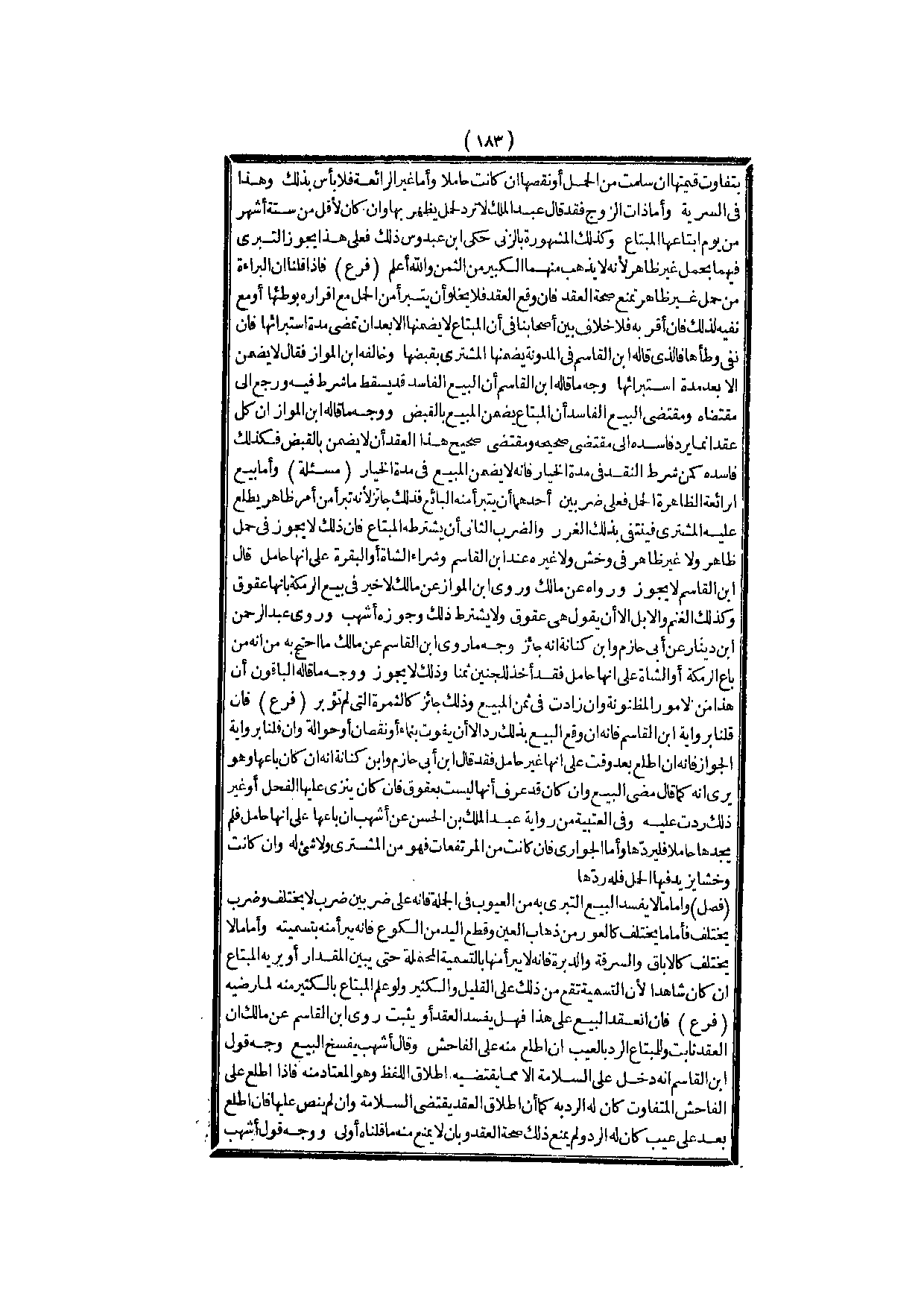 (فَرْعٌ) فَإِنْ انْعَقَدَ الْبَيْعُ عَلَى هَذَا فَهَلْ يَفْسُدُ الْعَقْدُ أَوْ يَثْبُتُ رَوَى ابْنُ الْقَاسِمِ عَنْ مَالِكٍ أَنَّ الْعَقْدَ ثَابِتٌ وَلِلْمُبْتَاعِ الرَّدُّ بِالْعَيْبِ إنْ اطَّلَعَ مِنْهُ عَلَى الْفَاحِشِ، وَقَالَ أَشْهَبُ يُفْسَخُ الْبَيْعُ وَجْهُ قَوْلِ ابْنِ الْقَاسِمِ أَنَّهُ دَخَلَ عَلَى السَّلَامَةِ إلَّا مِمَّا يَقْتَضِيه إطْلَاقُ اللَّفْظِ وَهُوَ الْمُعْتَادُ مِنْهُ فَإِذَا اطَّلَعَ عَلَى الْفَاحِشِ الْمُتَفَاوِتِ كَانَ لَهُ الرَّدُّ بِهِ كَمَا أَنَّ إطْلَاقَ الْعَقْدِ يَقْتَضِي السَّلَامَةَ، وَإِنْ لَمْ يَنُصَّ عَلَيْهَا، فَإِنْ اطَّلَعَ بَعْدُ عَلَى عَيْبٍ كَانَ لَهُ الرَّدُّ وَلَمْ يَمْنَعْ ذَلِكَ صِحَّةَ الْعَقْدِ وَبِأَنْ لَا يَمْنَعَ مِنْهُ مَا قُلْنَاهُ أَوْلَى، وَوَجْهُ قَوْلِ أَشْهَبَ