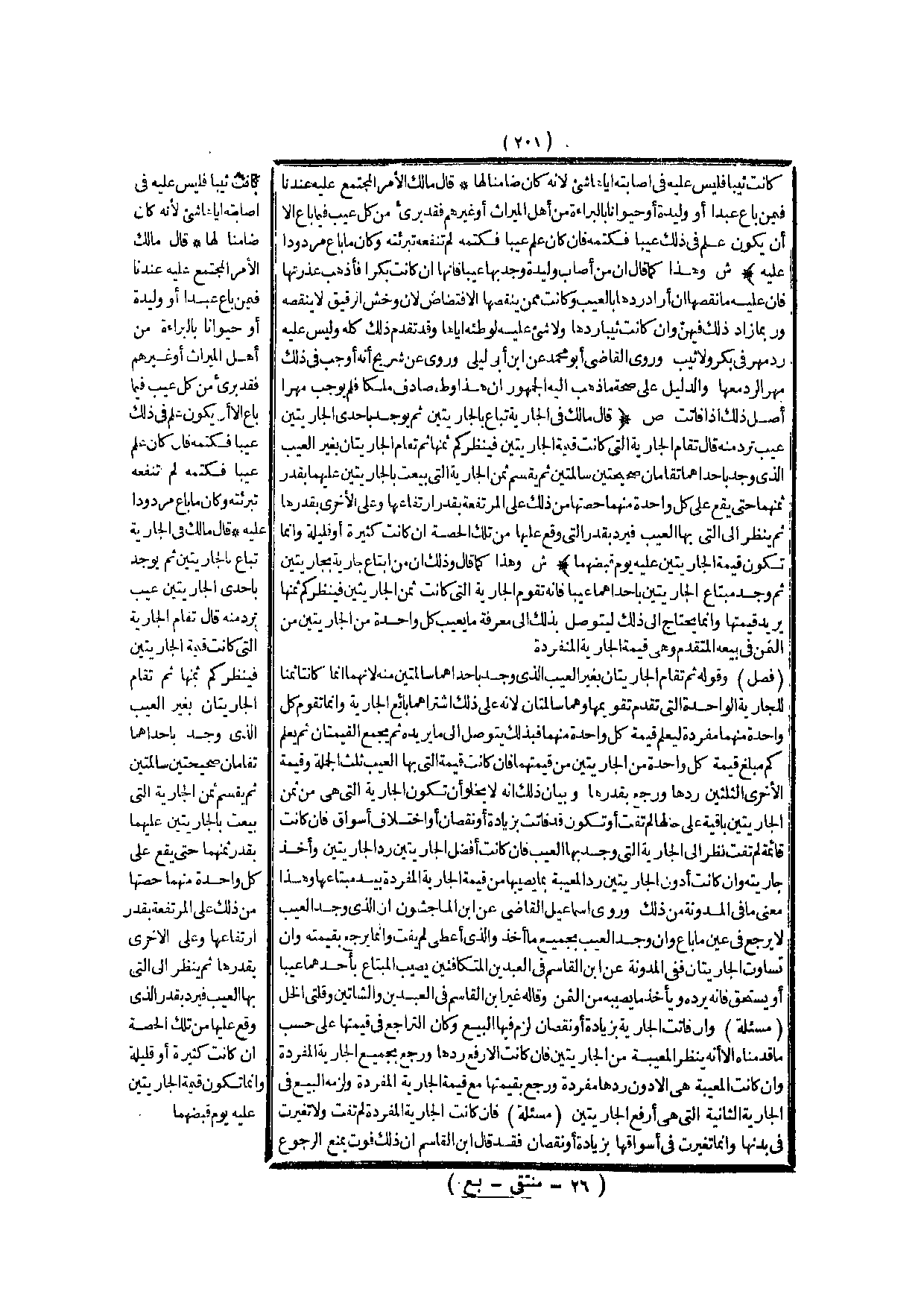 (ش) : وَهَذَا كَمَا قَالَ، وَذَلِكَ أَنَّ مَنْ ابْتَاعَ جَارِيَةً بِجَارِيَتَيْنِ، ثُمَّ وَجَدَ مُبْتَاعُ الْجَارِيَتَيْنِ بِإِحْدَاهُمَا عَيْبًا فَإِنَّهُ تُقَوَّمُ الْجَارِيَةُ الَّتِي كَانَتْ ثَمَنَ الْجَارِيَتَيْنِ فَيُنْظَرُ كَمْ ثَمَنُهَا يُرِيدُ قِيمَتَهَا، وَإِنَّمَا يُحْتَاجُ إلَى ذَلِكَ لِيُتَوَصَّلَ بِذَلِكَ إلَى مَعْرِفَةِ مَا يَعِيبُ كُلَّ وَاحِدَةٍ مِنْ الْجَارِيَتَيْنِ مِنْ الثَّمَنِ فِي بَيْعِهِ الْمُتَقَدِّمِ وَهِيَ قِيمَةُ الْجَارِيَةِ الْمُنْفَرِدَةِ.