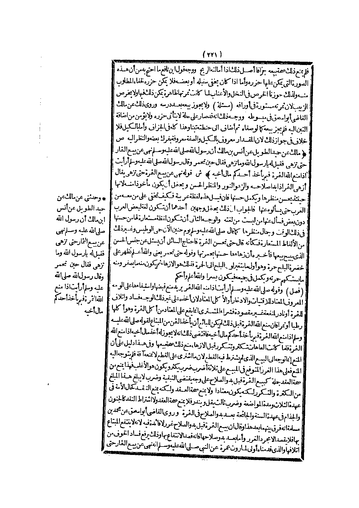 وَقَوْلُهُ - صَلَّى اللَّهُ عَلَيْهِ وَسَلَّمَ - «أَرَأَيْت إذَا مَنَعَ اللَّهُ الثَّمَرَ» يُرِيدُ مَنَعَ قَبْضَهَا وَاسْتِيفَاءَهَا عَلَى الْوَجْهِ الْمَعْرُوفِ الْمُعْتَادِ لِلِاقْتِيَاتِ وَالِادِّخَارِ أَوْ الْأَكْلِ الْمُعْتَادِ؛ لِأَنَّ أَخْذَهُ عَلَى غَيْرِ ذَلِكَ الْوَجْهِ فَسَادٌ وَإِتْلَافٌ لِلثَّمَرَةِ أَوْ نَادِرٌ لِمَنْفَعَةٍ غَيْرِ مَقْصُودَةٍ فَشِرَاءُ الْمُشْتَرِي إنَّمَا يَقَعُ عَلَى الْمُعْتَادِ مِنْ أَكْلِ الثَّمَرَةِ وَهُوَ أَكْلُهَا رُطَبًا أَوْ تَمْرًا فَإِنْ مَنَعَ اللَّهُ الثَّمَرَةَ قَبْلَ ذَلِكَ لَمْ يَكُنْ لِلْبَائِعِ أَنْ يَأْخُذَ الثَّمَنَ مِنْ الْمُبْتَاعِ لِقَوْلِهِ - صَلَّى اللَّهُ عَلَيْهِ وَسَلَّمَ - «إذَا مَنَعَ اللَّهُ الثَّمَرَةَ فَبِمَ يَأْخُذُ أَحَدُكُمْ مَالَ أَخِيهِ» .