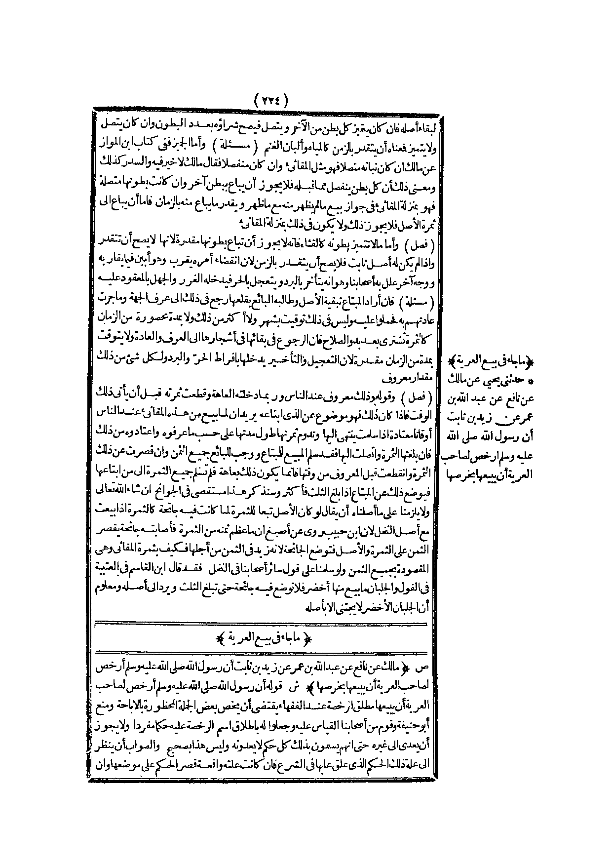 مَا جَاءَ فِي بَيْعِ الْعَرِيَّةِ (ص) : (مَالِكٌ عَنْ نَافِعٍ عَنْ عَبْدِ اللَّهِ بْنِ عُمَرَ عَنْ زَيْدِ بْنِ ثَابِتٍ «أَنَّ رَسُولَ اللَّهِ - صَلَّى اللَّهُ عَلَيْهِ وَسَلَّمَ - أَرْخَصَ لِصَاحِبِ الْعَرِيَّةِ أَنْ يَبِيعَهَا بِخَرْصِهَا» )