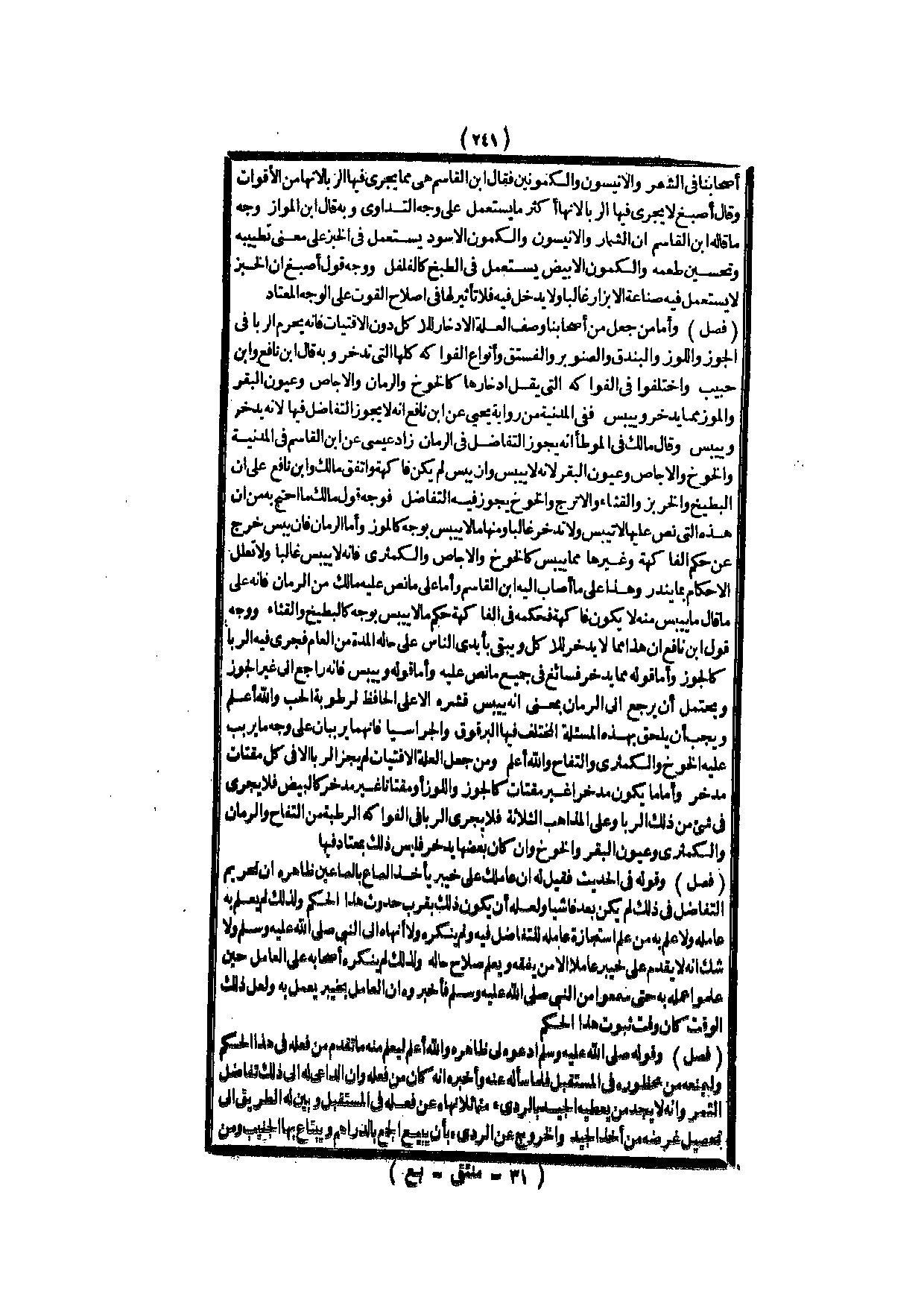 وَأَمَّا مَنْ جَعَلَ مِنْ أَصْحَابِنَا وَصْفَ الْعِلَّةِ الِادِّخَارَ لِلْأَكْلِ دُونَ الِاقْتِيَاتِ فَإِنَّهُ يُحَرِّمُ الرِّبَا فِي الْجَوْزِ وَاللَّوْزِ وَالْبُنْدُقِ وَالصَّنَوْبَرِ وَالْفُسْتُقِ وَأَنْوَاعِ الْفَوَاكِهِ كُلِّهَا الَّتِي تُدَّخَرُ وَبِهِ قَالَ ابْنُ نَافِعٍ وَابْنُ حَبِيبٍ وَاخْتَلَفُوا فِي الْفَوَاكِهِ الَّتِي يَقِلُّ ادِّخَارُهَا كَالْخَوْخِ وَالرُّمَّانِ وَالْإِجَّاصِ وَعُيُونِ الْبَقَرِ وَالْمَوْزِ مِمَّا يُدَّخَرُ وَيَيْبَسُ فَفِي الْمُزَنِيَّة مِنْ رِوَايَةِ يَحْيَى عَنْ ابْنِ نَافِعٍ أَنَّهُ لَا يَجُوزُ التَّفَاضُلُ فِيهَا؛ لِأَنَّهُ يُدَّخَرُ وَيَيْبَسُ وَقَالَ مَالِكٌ فِي الْمُوَطَّأِ إنَّهُ يَجُوزُ التَّفَاضُلُ فِي الرُّمَّانِ زَادَ عِيسَى عَنْ ابْنِ الْقَاسِمِ فِي الْمُزَنِيَّة وَالْخَوْخِ وَالْإِجَّاصِ وَعُيُونِ الْبَقَرِ؛ لِأَنَّهُ لَا يَيْبَسُ وَإِنْ يَبِسَ لَمْ يَكُنْ فَاكِهَةً وَاتَّفَقَ مَالِكٌ وَابْنُ نَافِعٍ عَلَى أَنَّ الْبِطِّيخَ وَالْخِرْبِزَ وَالْقِثَّاءَ وَالْأُتْرُجَّ وَالْخَوْخَ يَجُوزُ فِيهِ التَّفَاضُلُ.