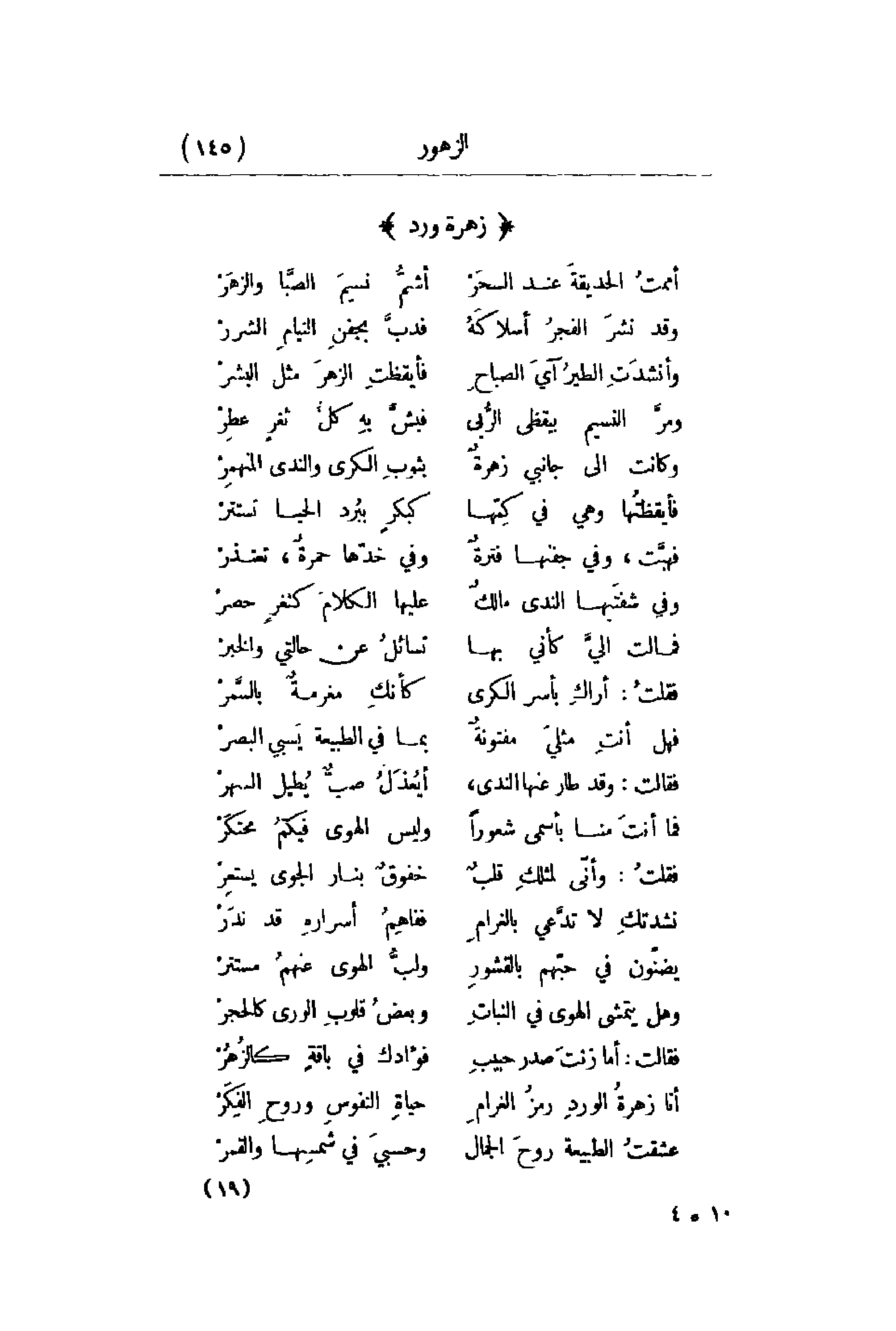 أنا زهرةُ الوردِ رمزُ الغرامِ ... حياةِ النفوسِ وروحِ الفِكَرْ