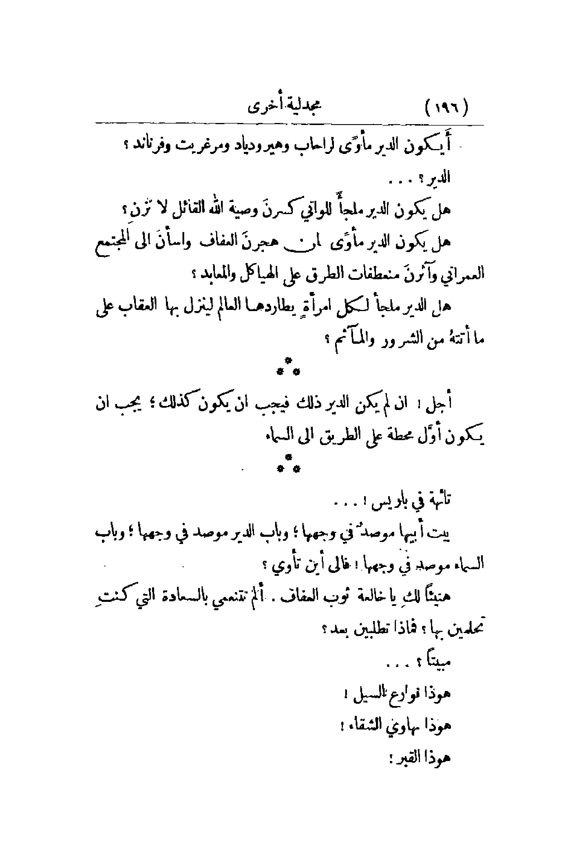 هل يكون الدير مأوًى لمن هجرنَ العفاف وأسأنَ إلى المجتمع العمراني وآثرنَ منعطفات الطرق على الهياكل والمعابد؟