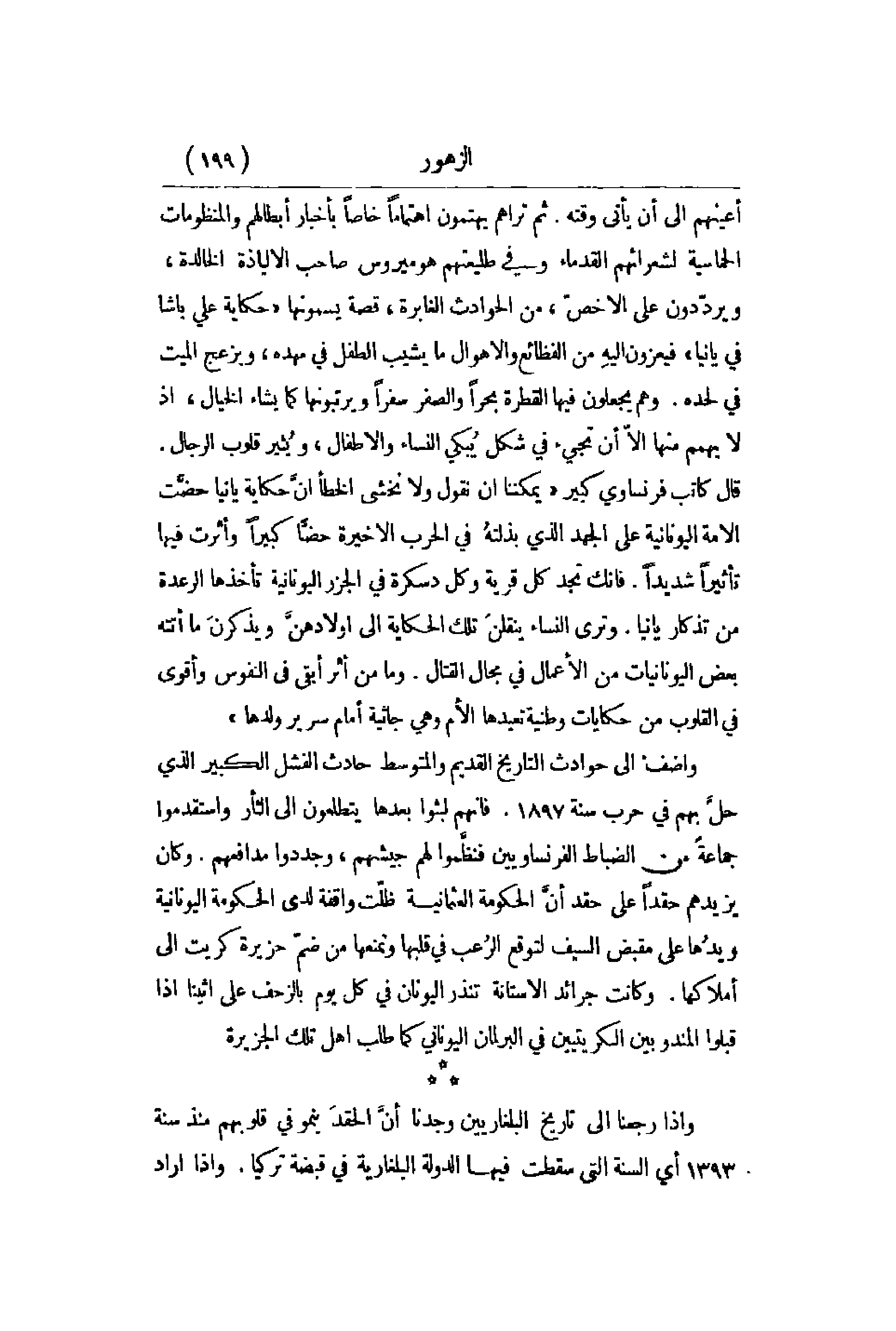 اليونانية تأخذها الرعدة من تذكار يانيا. وترى النساء ينقلنَ تلك الحكاية إلى أولادهنَّ ويذكرنَ ما أتته بعض اليونانيات من الأعمال في مجال القتال. وما من أثر أبقى في النفوس وأقوى في القلوب من حكايات وطنية تعيدها الأم وهي جاثية أمام سرير ولدها وأضفْ إلى حوادث التاريخ القديم والمتوسط حادث لفشل الكبير الذي حلَّ بهم في حرب سنة 1897. فإنهم لبثوا بعدها يتطلعون إلى الثأر واستقدموا جماعةً من الضباط الفرنساويين فنظَّموا لهم جيشهم , وجددوا مدافعهم. وكان يزيدهم حقداً على حقد أنَّ الحكومة العثمانية ظلّت واقفة لدى الحكومة اليونانية ويدُها على مقبض السيف لتوقع الرُعب في قلبها وتمنعها من ضمّ جزيرة كريت إلى أملاكها. وكانت جرائد الأستانة تنذر اليونان في كل يوم بالزحف على أثينا إذا قبلوا المندوبين الكريتيين في البرلمان اليوناني كما طلب أهل تلك الجزيرة.