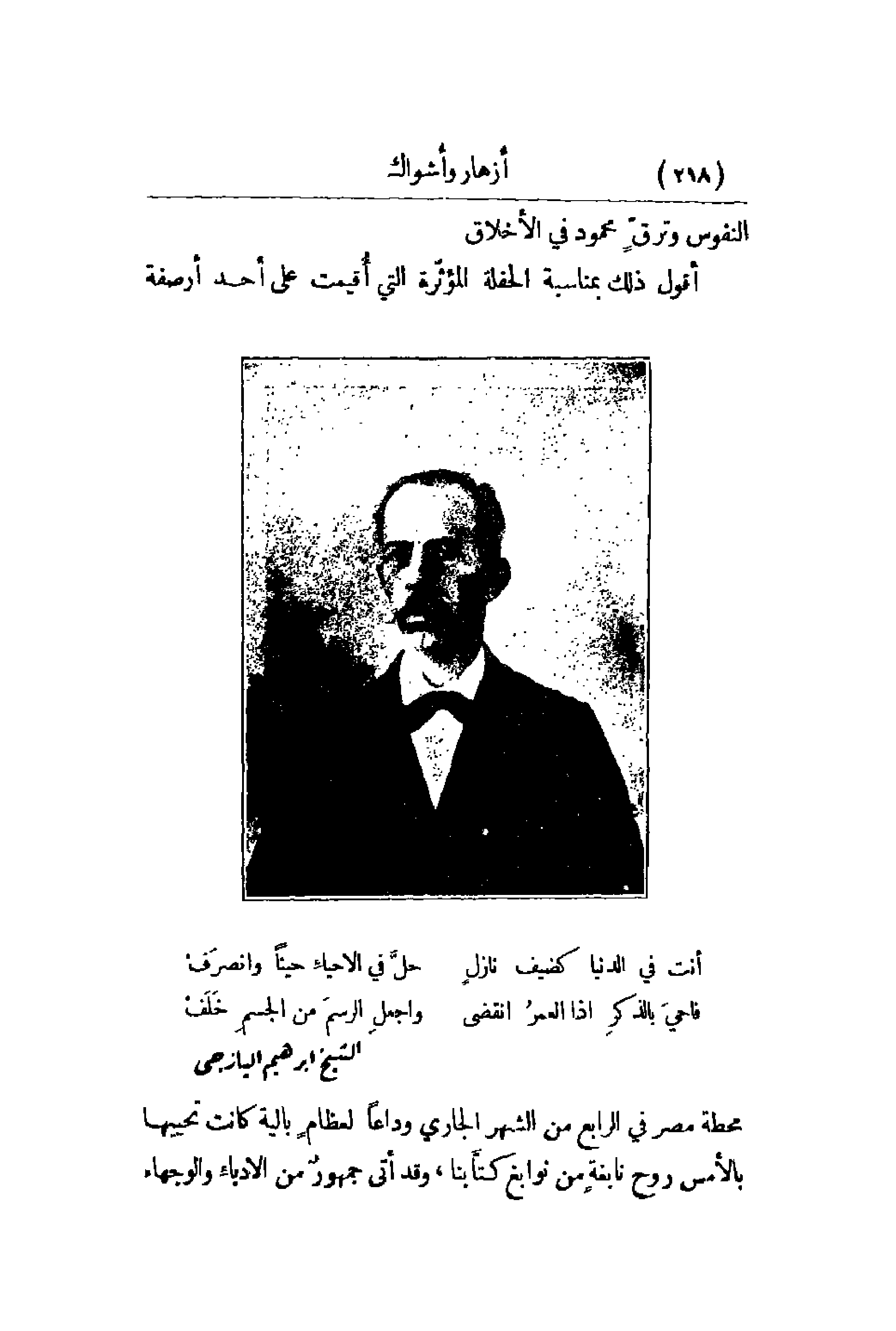 النفوس وترقٍّ محمود في الأخلاق. أقول ذلك بمناسبة الحفلة المؤثرة التي أُقيمت على أحد أرصفه.