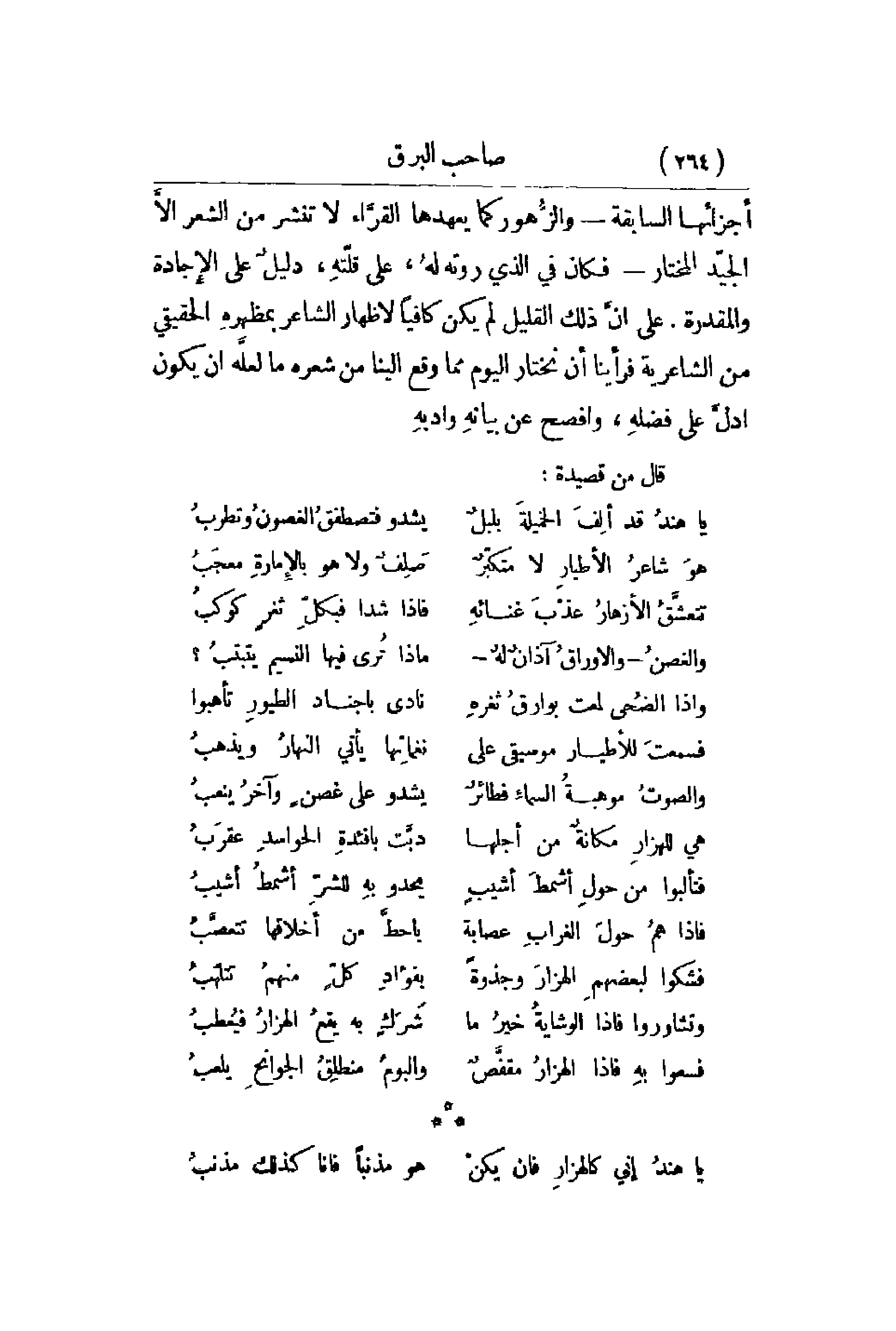 يا هندُ قد الِفَ الخميلةَ بلبلٌ ... يشدو فتصطفقُ الغصونُ وتطربُ